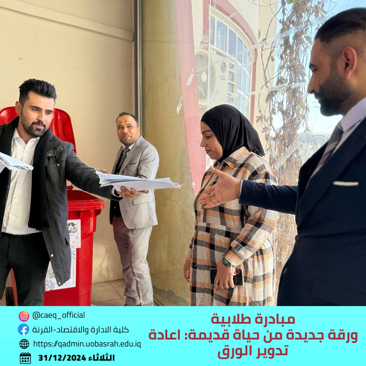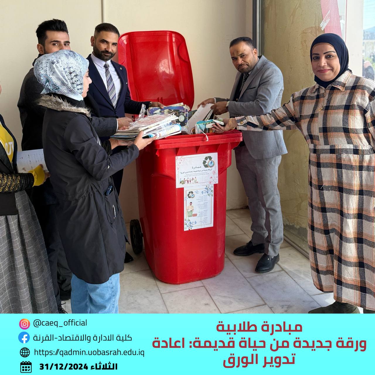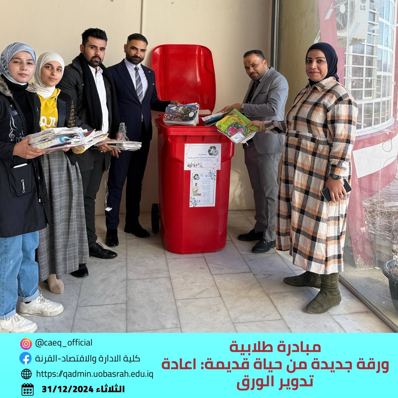 Fourth-year students from the Project Management Department have launched a remarkable initiative titled “A New Page from an Old Life: Paper Recycling.” The initiative aims to promote environmental awareness and encourage sustainable practices among students. Its goal is to educate the university community about the importance of paper recycling and how used materials can be transformed into new products, contributing to environmental preservation and waste reduction.