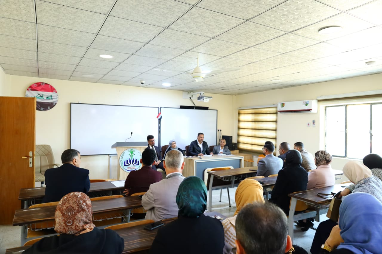 Within the framework of continuous follow-ups and directives by Assistant Professor Dr. Majid Asghar Muhammad Al-Nawab, Dean of the College of Nursing at the University of Basra, he met with the Dean's Assistants for Administrative and Scientific Affairs, the heads of the scientific branch at the college, and the faculty members and reviewed their needs.. especially during the end of the semester exams, as the meeting discussed the most important directives issued by the Presidency of the University of Basra and the Deanship of the College and reviewed the most important obstacles and found appropriate solutions for them.For his part, Al-Nawab urged his assistants to stand on the problems facing the scientific and administrative branches, and students and to overcome all difficulties and solve them in order to achieve solid education in the service of the scientific process in our dear university.