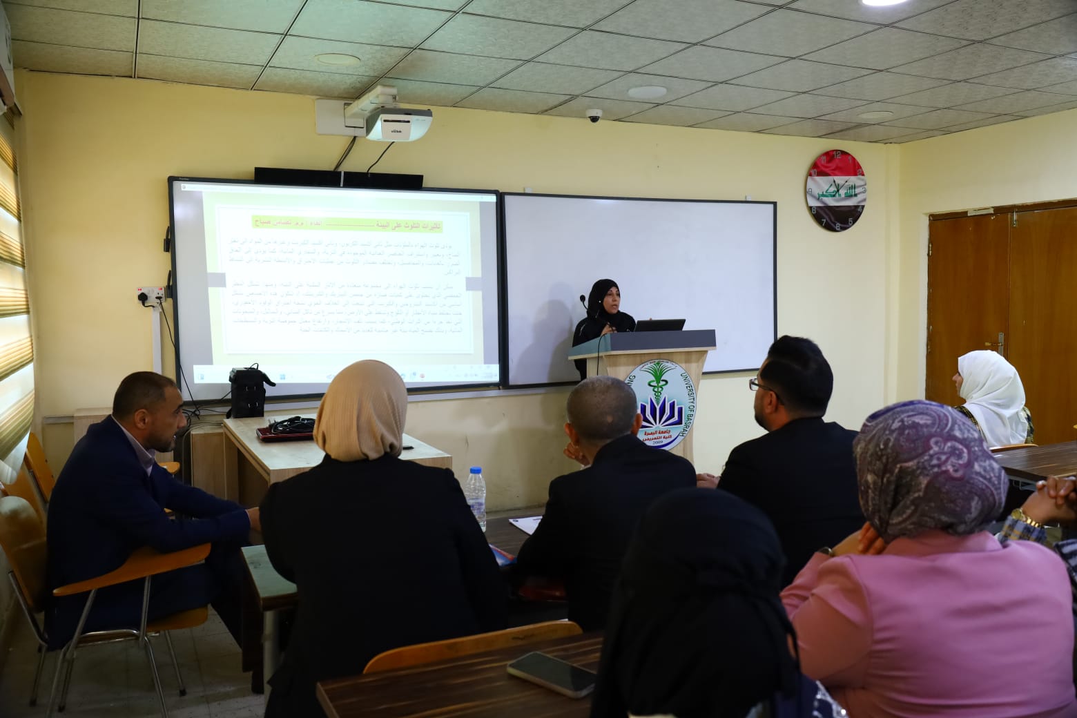 The Continuing Education Unit organized a scientific symposium on (Community Awareness in Addressing Environmental Pollution), in which lecturers Dr. Abdul Muttalib Abdullah Muhammad, Dr. Iman Hanash Rahi, Assistant Professor Tadhamon Sabah, Assistant Professor Zahraa Mahmoud, and Assistant Professor Zainab Alaa gave lectures. The symposium included presenting and discussing the concept of environmental pollution, its types, sources, and harmful effects on the environment and health security of humans and other living organisms, then the treatments and solutions proposed for it, and how to raise awareness and educate the community to preserve the environment. The symposium was attended by a number of professors, teaching assistants, and students in the College of Nursing.The symposium also touched on the effects of pollution on the environment, the effect of air pollution on the successive chain of the food chain, the effect of pollution on human and animal health, the effect of pollution (air pollution) on the climate, the ozone layer, and wildlife and aquatic life in general, in addition to how humans contribute to increasing environmental pollution.