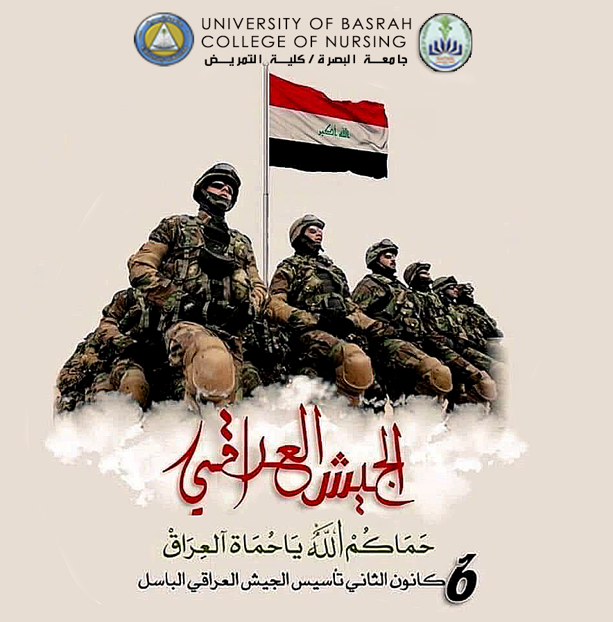 Prof. Dr. Abdulameer Abdullah Al-Mousawi, Dean of the College of Nursing, extended his congratulations and blessings to our valiant Iraqi army on the occasion of the centenary of its founding, in which he invoked the fragrant stances and heroics to defend this good land, its people, its sanctities and its history. Every year, our beloved Iraq and our brave army and rallied us with a thousand good |