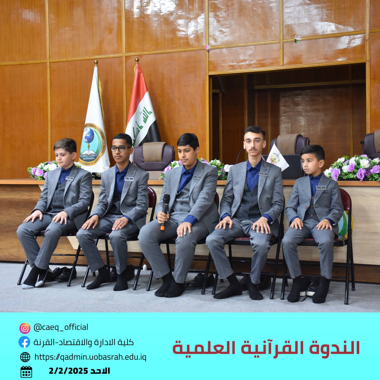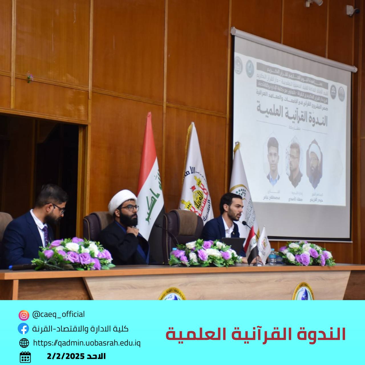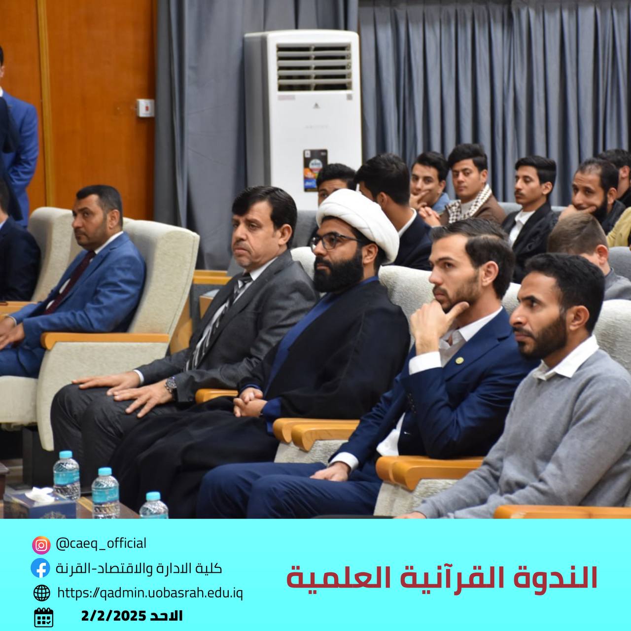 The College of Administration and Economics - Qurna at the University of Basra organized a Quranic scientific seminar in cooperation with the Quranic House at the Al-Husseiniya Holy Shrine, aiming to enhance religious and intellectual awareness among students and faculty members.