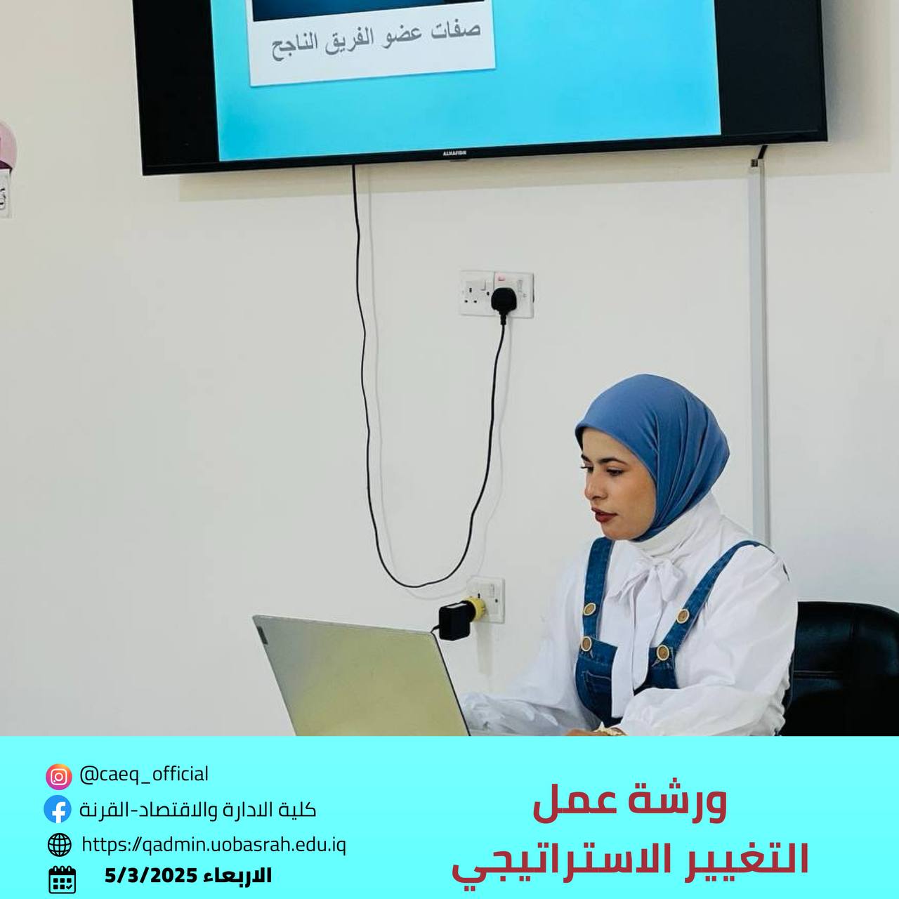 The workshop was presented by a group of students: Tayba Sabah Joudeh, Zainab Mohammed Hadi, Mujtaba Imad Suwadi, Ali Habib Ali, and Muntadhar Khalid. They covered the concept of change management, its importance in keeping pace with transformations, and adaptation strategies such as effective communication, employee involvement, and training and development.