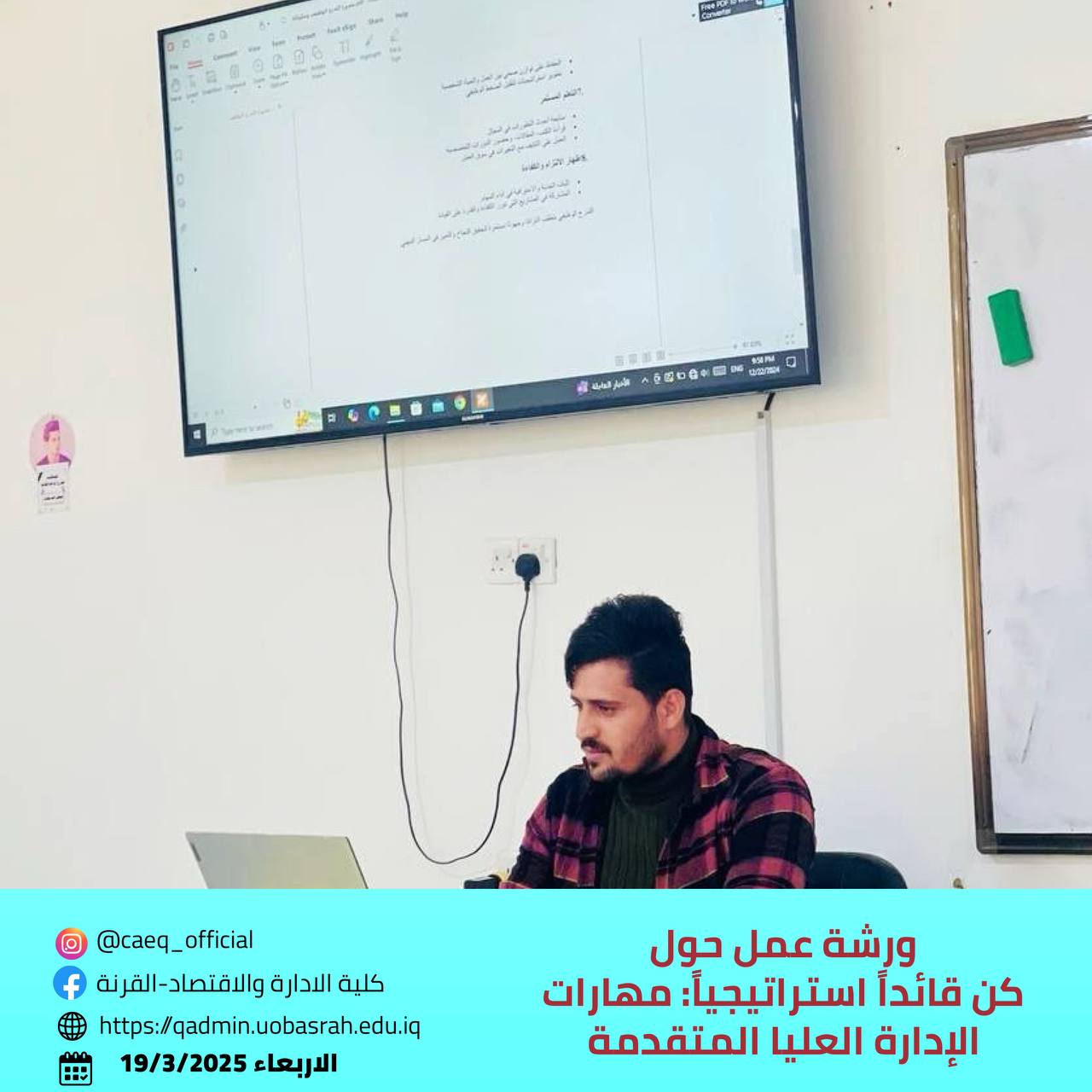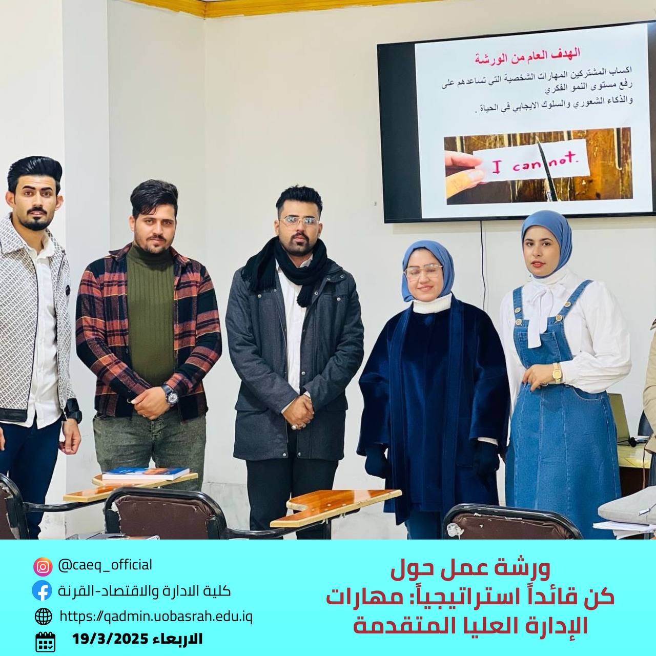 The College of Administration and Economics – Qurna, Department of Project Management at the University of Basrah organized a workshop titled “Be a Strategic Leader: Advanced Senior Management Skills.”