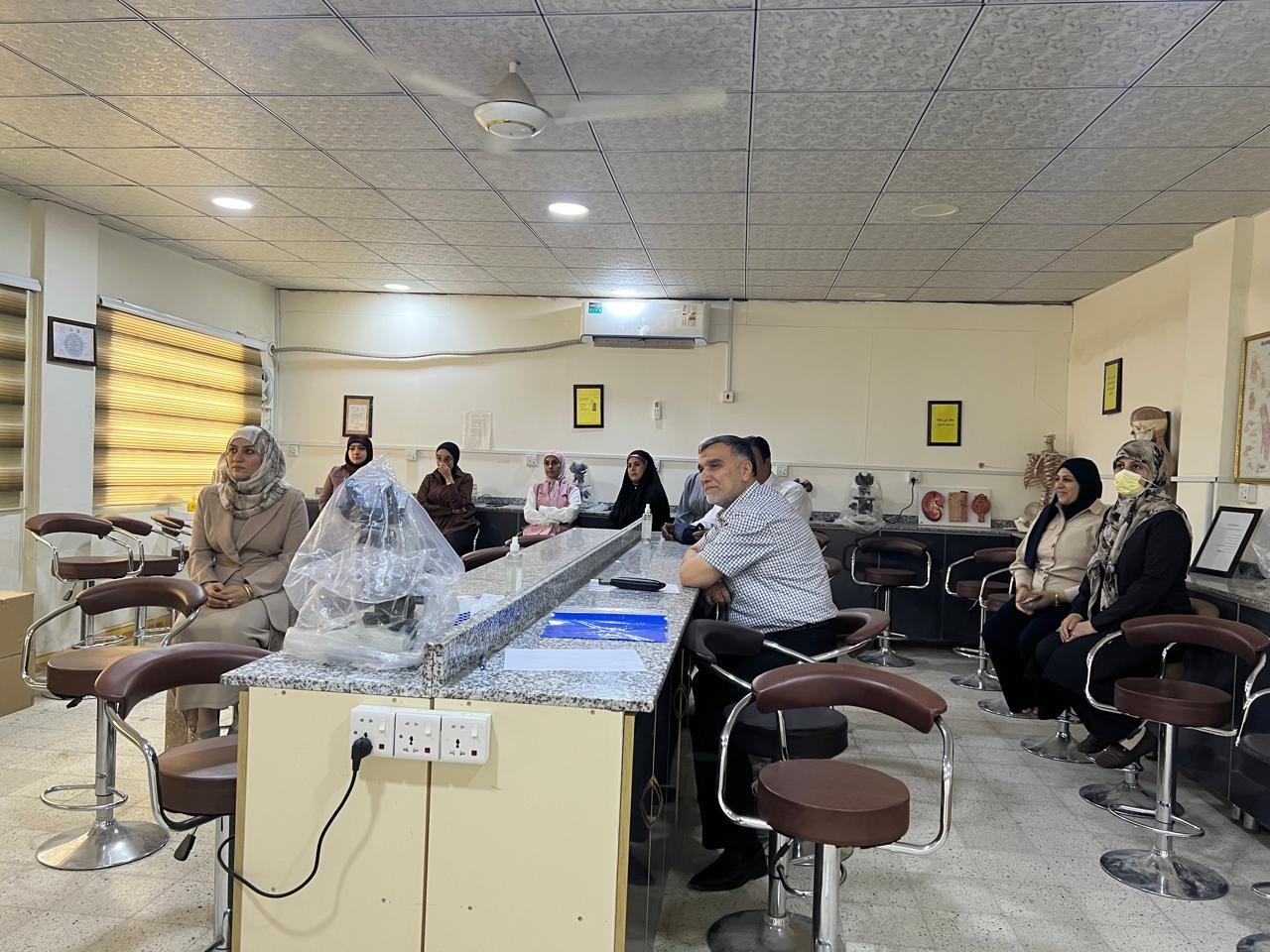 Under the patronage of the Dean of the College of Nursing, Basra University, Assistant Professor Dr. Majid Asghar Muhammad Al-Nawab, the College's Continuing Education Unit organized a workshop on the Storage and Handling of Chemical and Biological Materials. Lecturers included Assistant Lecturer Zahraa Mahmoud, Assistant Lecturer Zainab Alaa, and Assistant Lecturer Tadhamon Sabah.The workshop targeted faculty and laboratory staff and covered several main topics. The first topic covered the correct methods for storing biological materials in laboratories. The second topic addressed the correct methods for storing chemicals in laboratories.