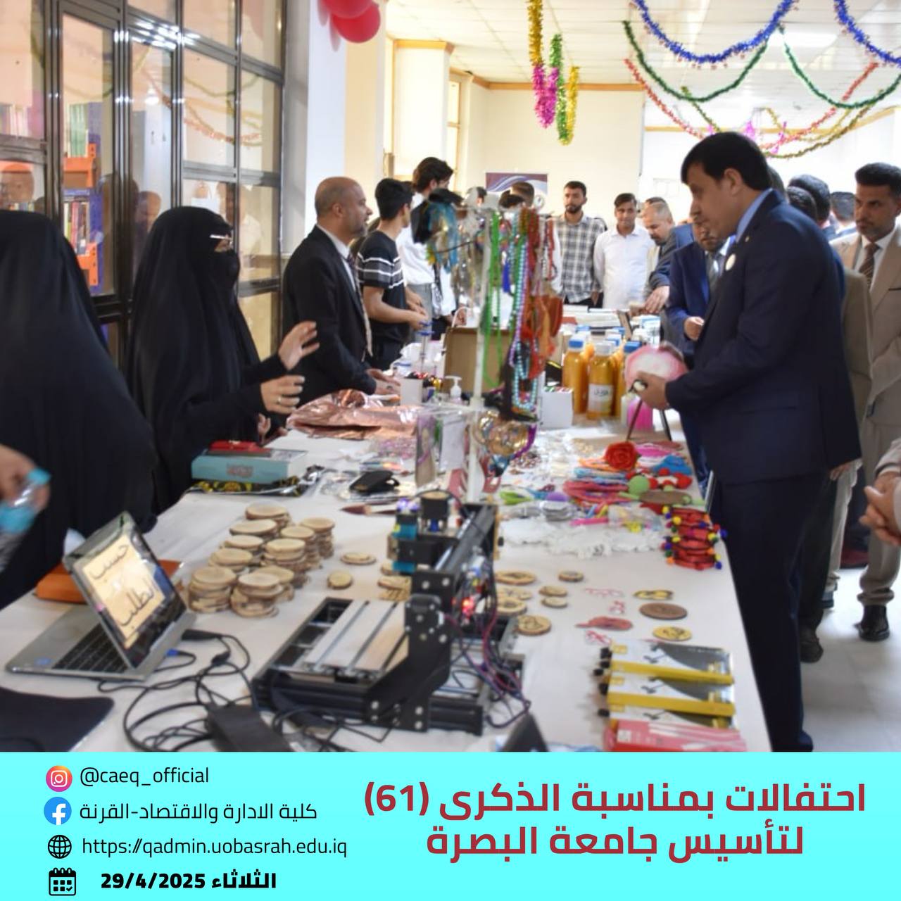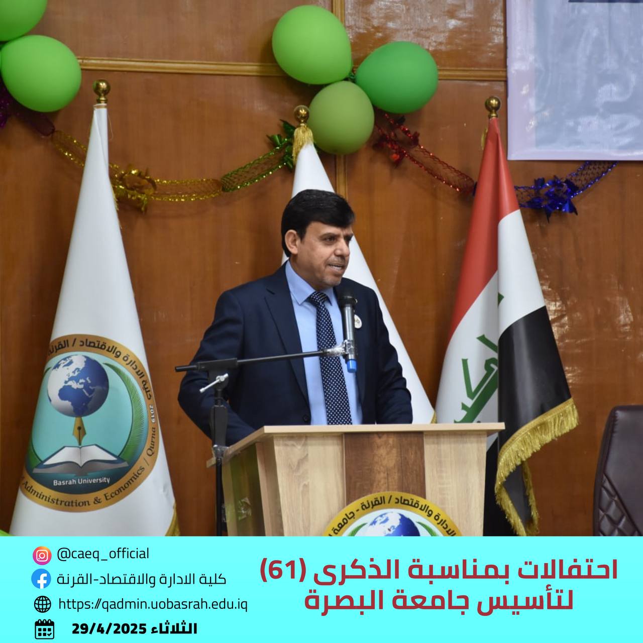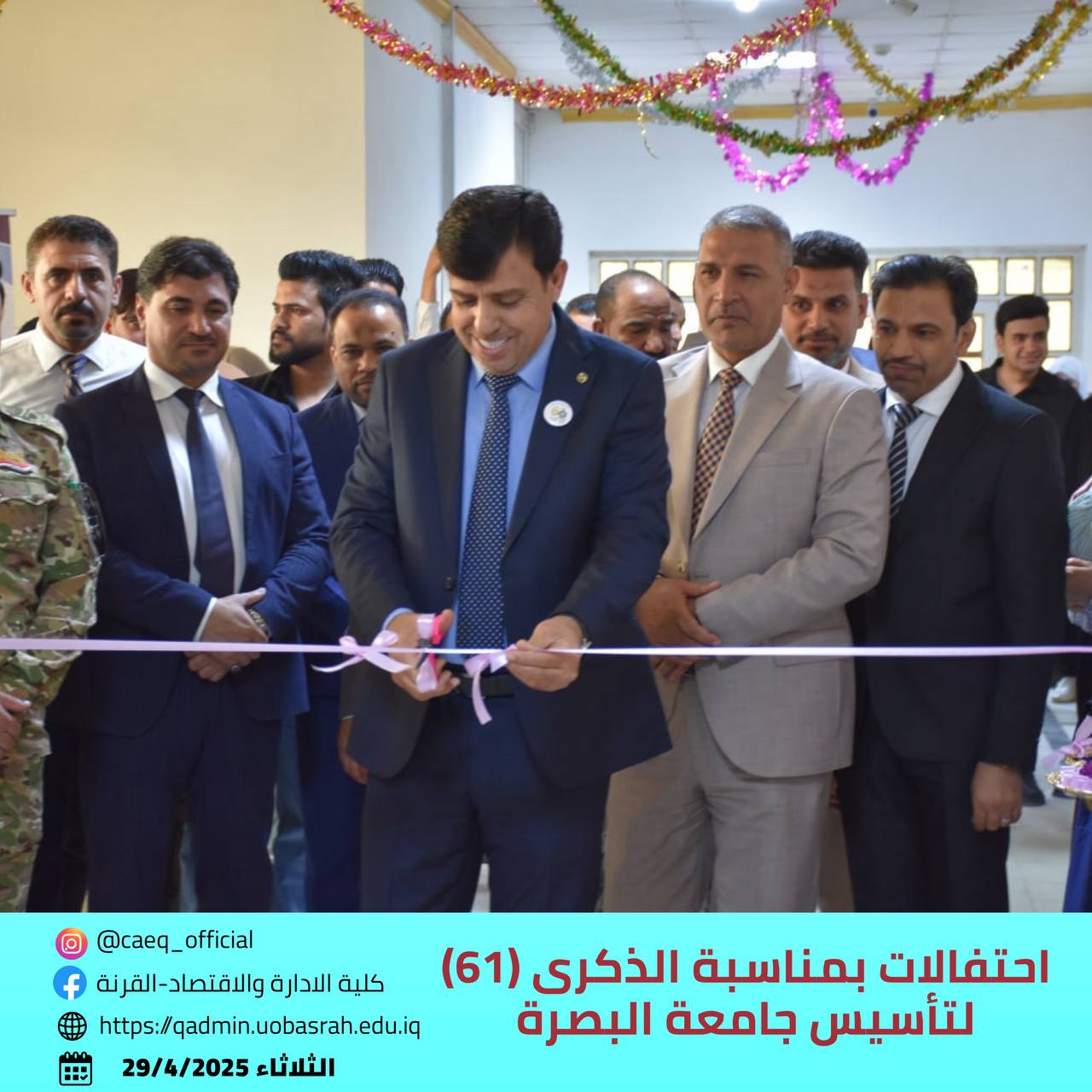 The Dean of the College of Administration and Economics – Qurna, Professor Dr. Adnan Farhan Al-Jourani, inaugurated the college’s celebration marking the 61st anniversary of the founding of the University of Basrah, with a wide academic and student attendance.