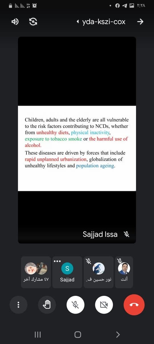 | The daily follow-up continue by Prof. Dr. Abdel-Amir Abdullah Al-Mousawi, Dean of the College, with the electronic lectures of the students, where the lecture of Prof. Dr. Sajjad Salem Issa was entered and the course of the lecture was followed and praised the interactive teaching method. |