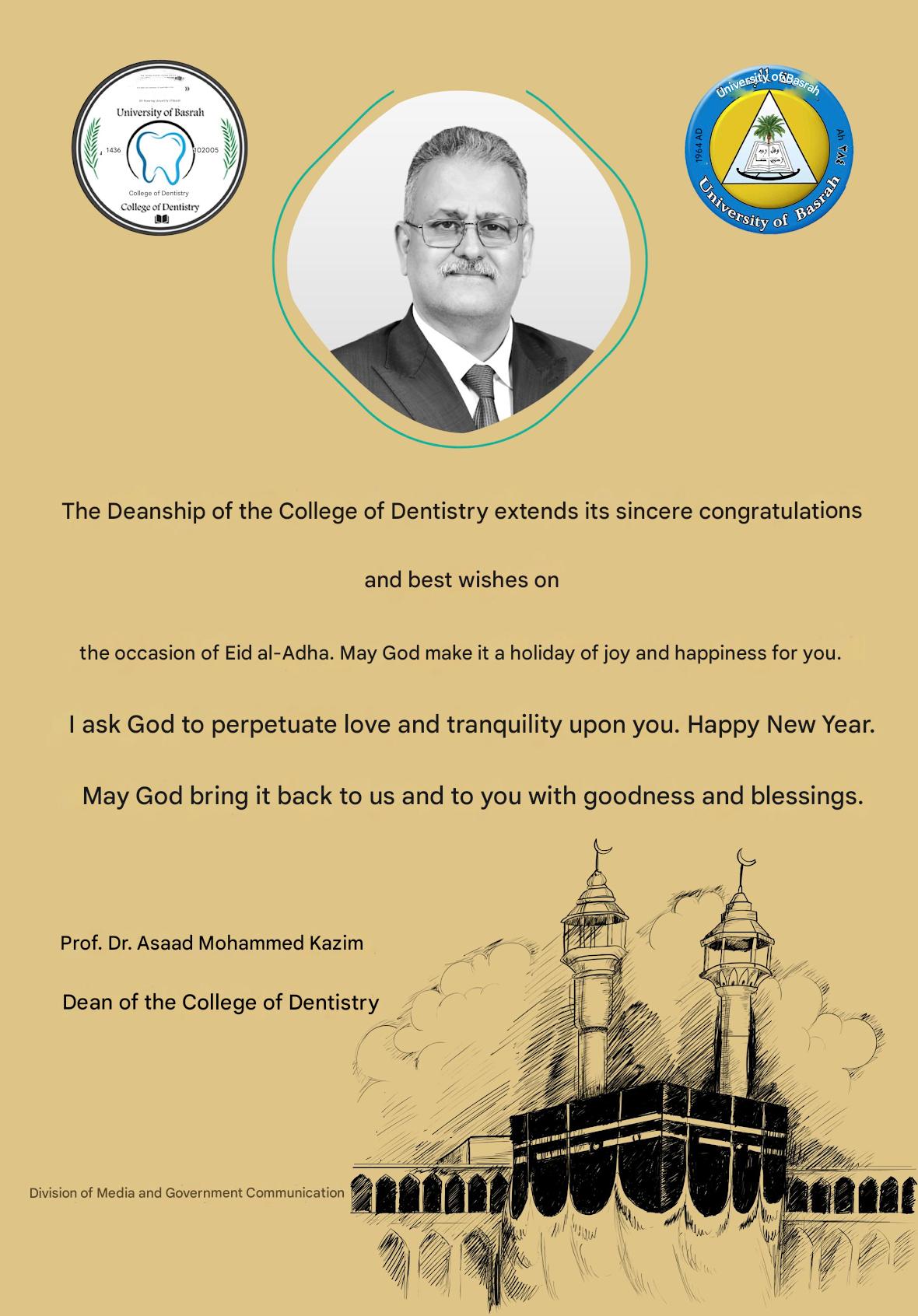 The College of Dentistry extends its sincere congratulations and best wishes on the occasion of Eid al-Adha.