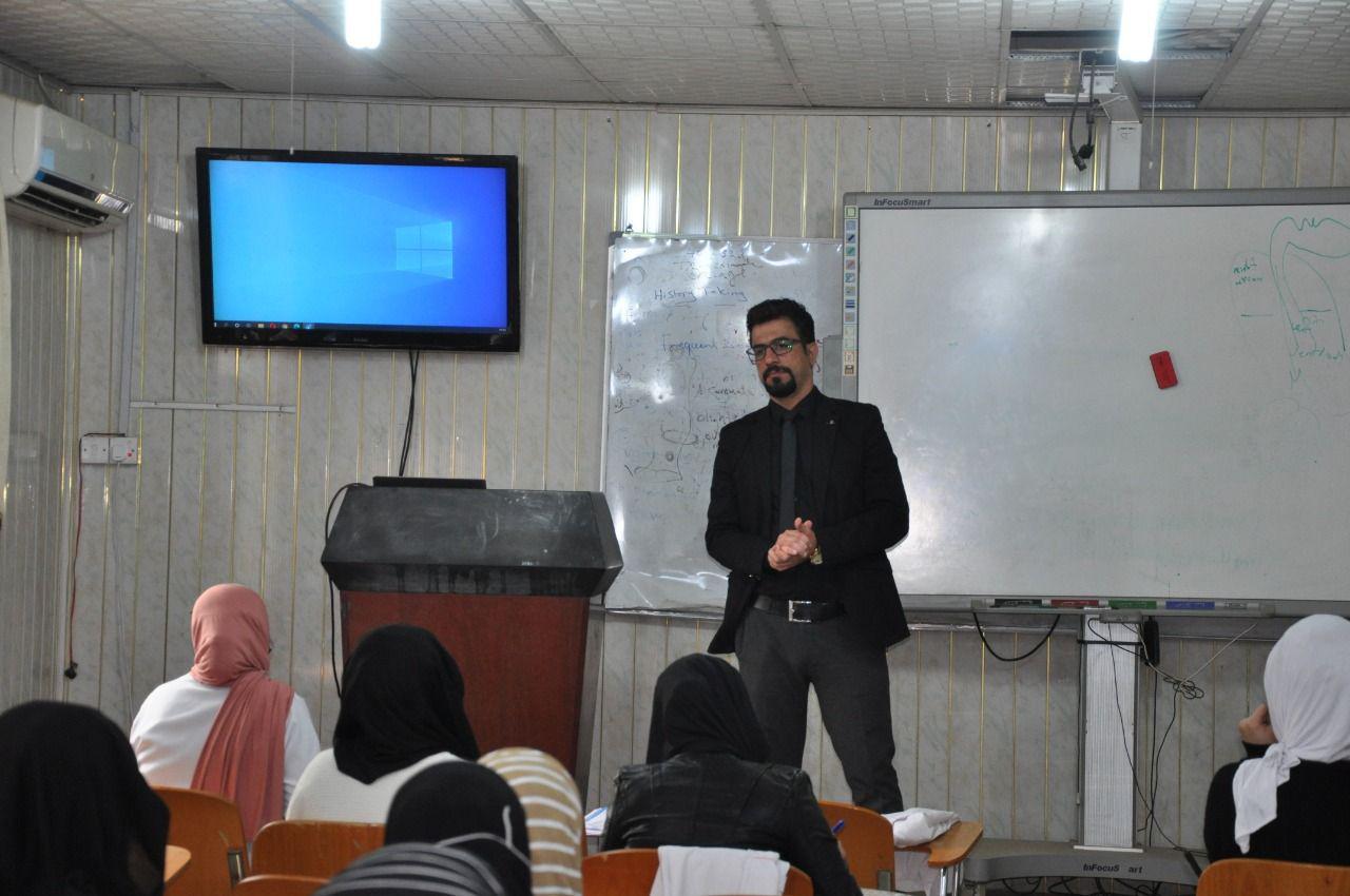 Media of the College of Nursing Alaa Al-Husseini Under the patronage of Prof. Dr. Abdul Amir Abdullah Al-Mousawi, Dean of the College of Nursing at Basra University, the college organized a scientific lecture on English language skills. The assistant teacher Muhammad Al-Kanani lectured in it, and the lecture aimed at how to develop the skill of listening and the skill of speaking by playing an audio clip. |