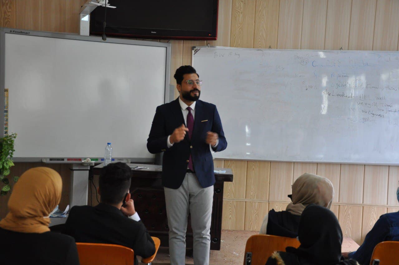 Under the patronage of Prof. Dr. Abdul Amir Abdullah Al-Mousawi, Dean of the College of Nursing at the University of Basrah, the college organized an instructional lecture on nursing and how the nurse works in Iraqi hospitals in which the the assistant teacher Maher (MSc. Adult nursing) lectured and delivered it to the first stage students of the (morning study). The lecture included important instructions on nursing and how the nurse works, whether they are In university life or professional life, the lecture also touched on several axes, the most important of which are the curricula, division of degrees, the method of giving lectures, as well as spreading the spirit of cooperation and love for this humanitarian profession, its position in society and its honorable positions during the COVID-19 CRISIS.