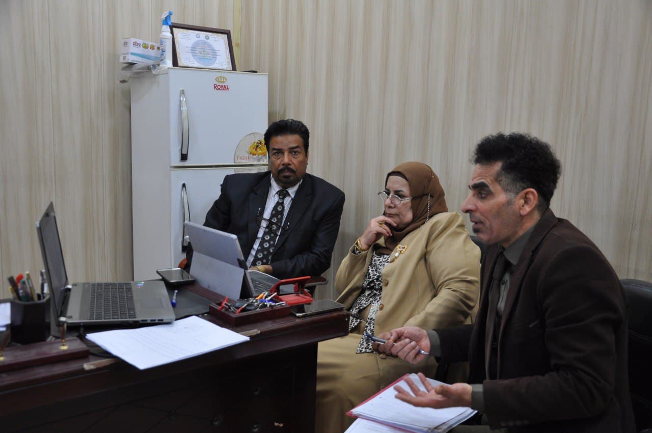 Media of the College of Nursing, University of Basra Alaa Al-Husseini Under the patronage of Prof. Dr. Abdulameer Abdullah Al-Mousawi, Dean of the College of Nursing at the University of Basra, the Scientific Committee met at the College of Nursing at the University of Basra under the chairmanship of Prof. Dr. Mahfouz Faleh Hasan, Assistant Professor Dr. Wasfi Zahir Abd Ali and Lecturer Dr. Sundus Baqer Dawood. The most important of them are supporting and updating the plan of projects for graduating fourth stage students for the academic year 2021/2020, adopting a proposal to develop nursing programs in accordance with approved international standards, and proposing an internal system for the work of the scientific committee to keep pace with scientific development. |