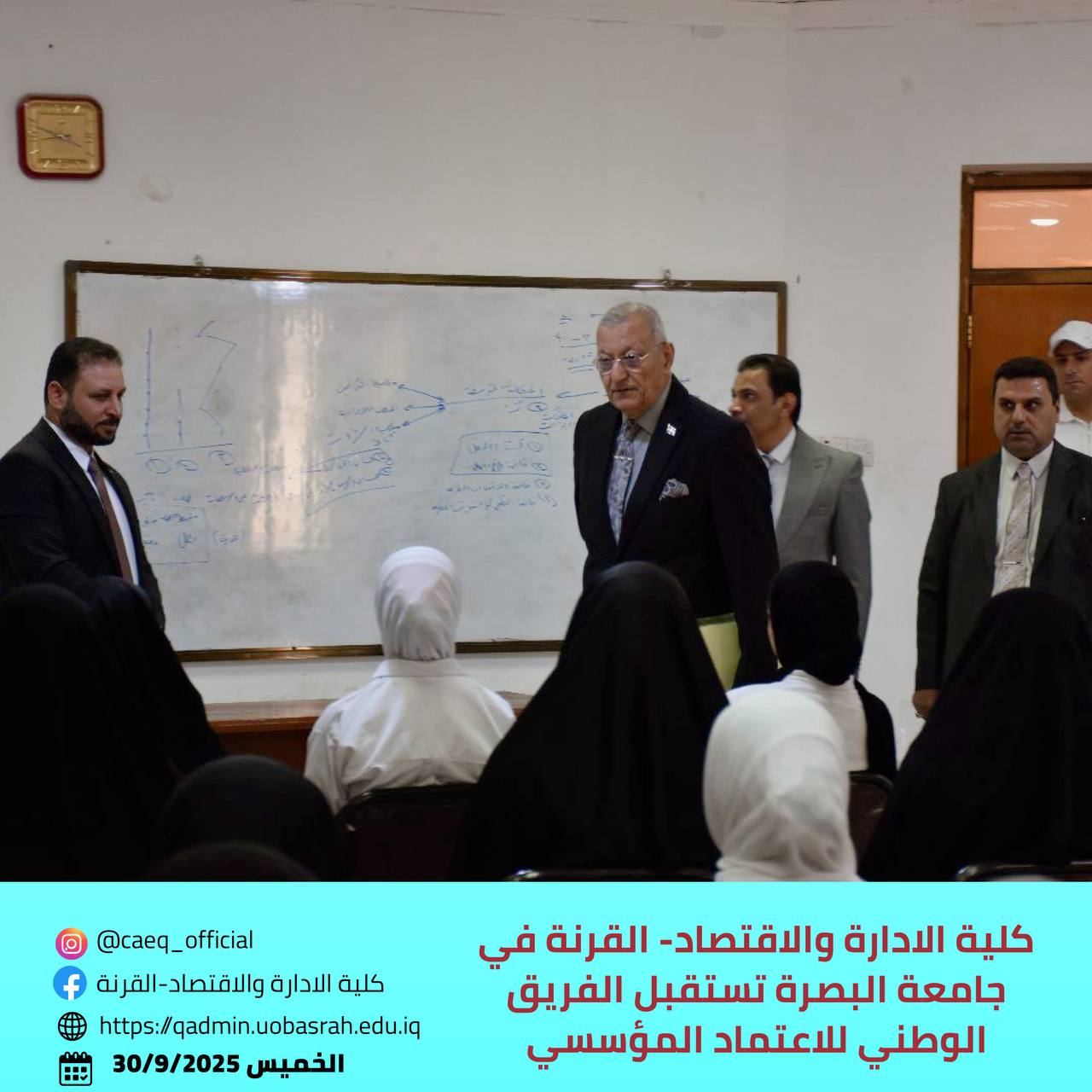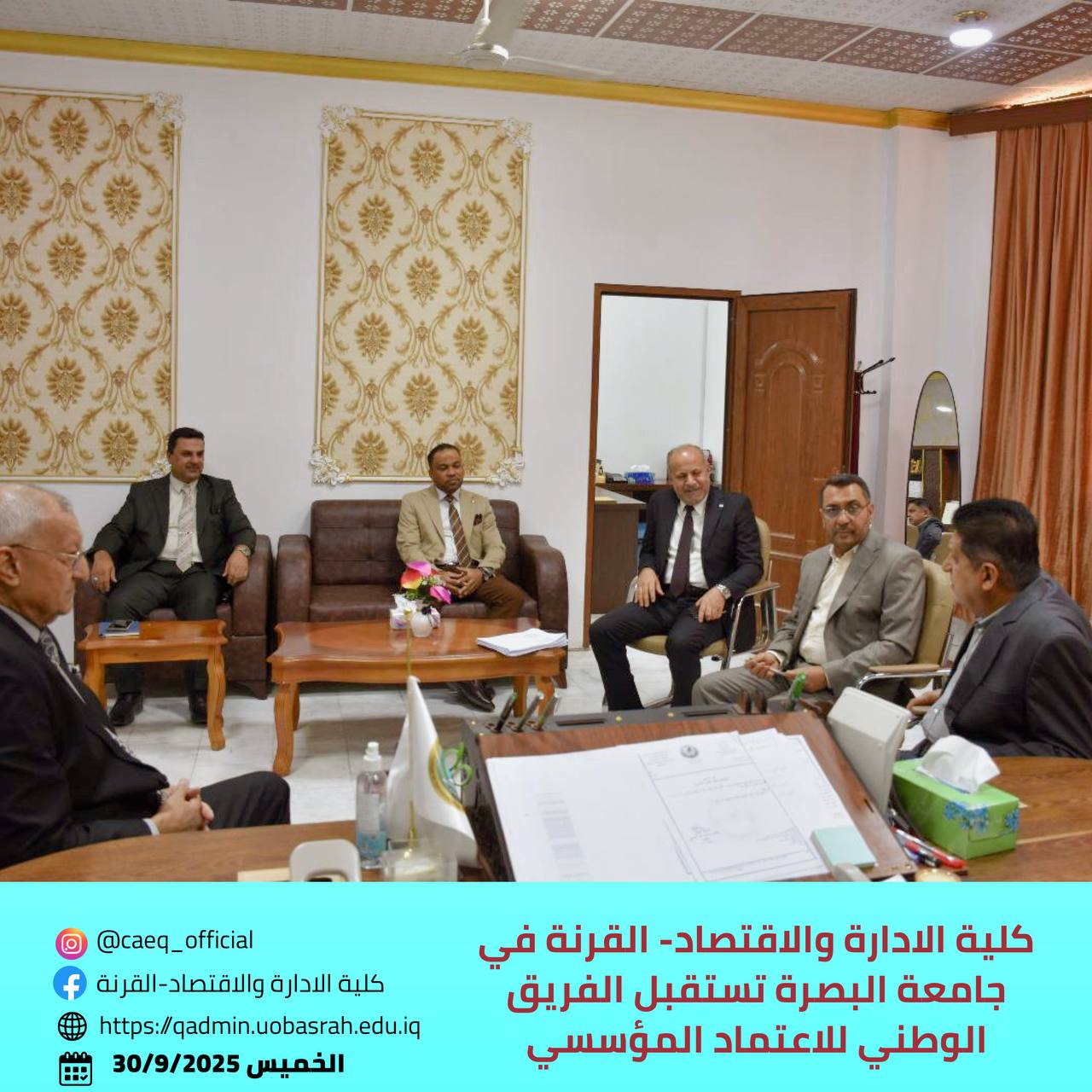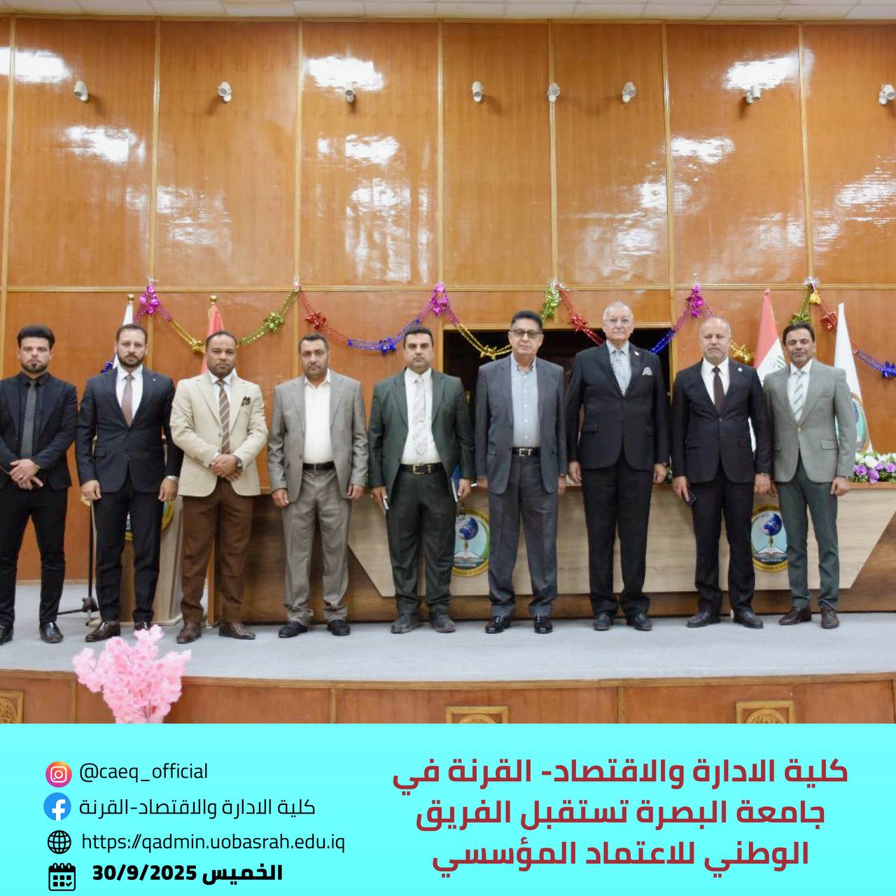 The College of Administration and Economics – Qurna at the University of Basrah welcomed the National Team for Institutional Accreditation as part of the requirements for completing the university’s institutional accreditation, supervised by the Department of Quality Assurance and Academic Performance at the Ministry of Higher Education and Scientific Research.