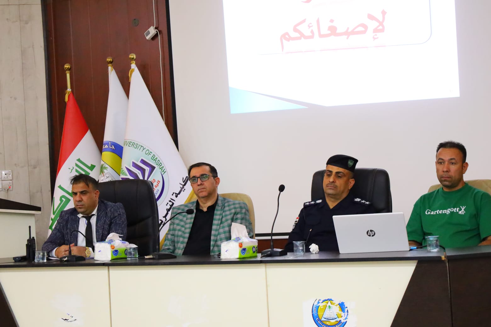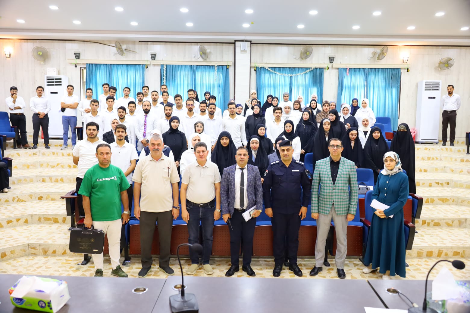 The Continuing Education Unit, in cooperation with the Scientific Incubator Unit, in partnership with the Media and Government Communication Division, and in collaboration with the Directorate of Combating Narcotics and Psychotropic Substances in Basra Governorate, organized an awareness and educational seminar on Sunday, October 19, 2025, entitled "Awareness of the Dangers of Drugs and Psychotropic Substances and Their Negative Effects on University Students." Under the slogan "With Science and Knowledge, We Combat Drugs," the seminar was moderated by Assistant Professor Dr. Firas Abdul Qader, Head of the Community Health Branch. The seminar was presented by the Director of the Media Division at the Directorate of Combating Narcotics and Psychotropic Substances, Brigadier General Humam Majeed Abdul Aoun, Colonel Ali Mohsen, Dr. Engineer Saddam Abdul Amir, and Commissioner Majid Ghanem.
