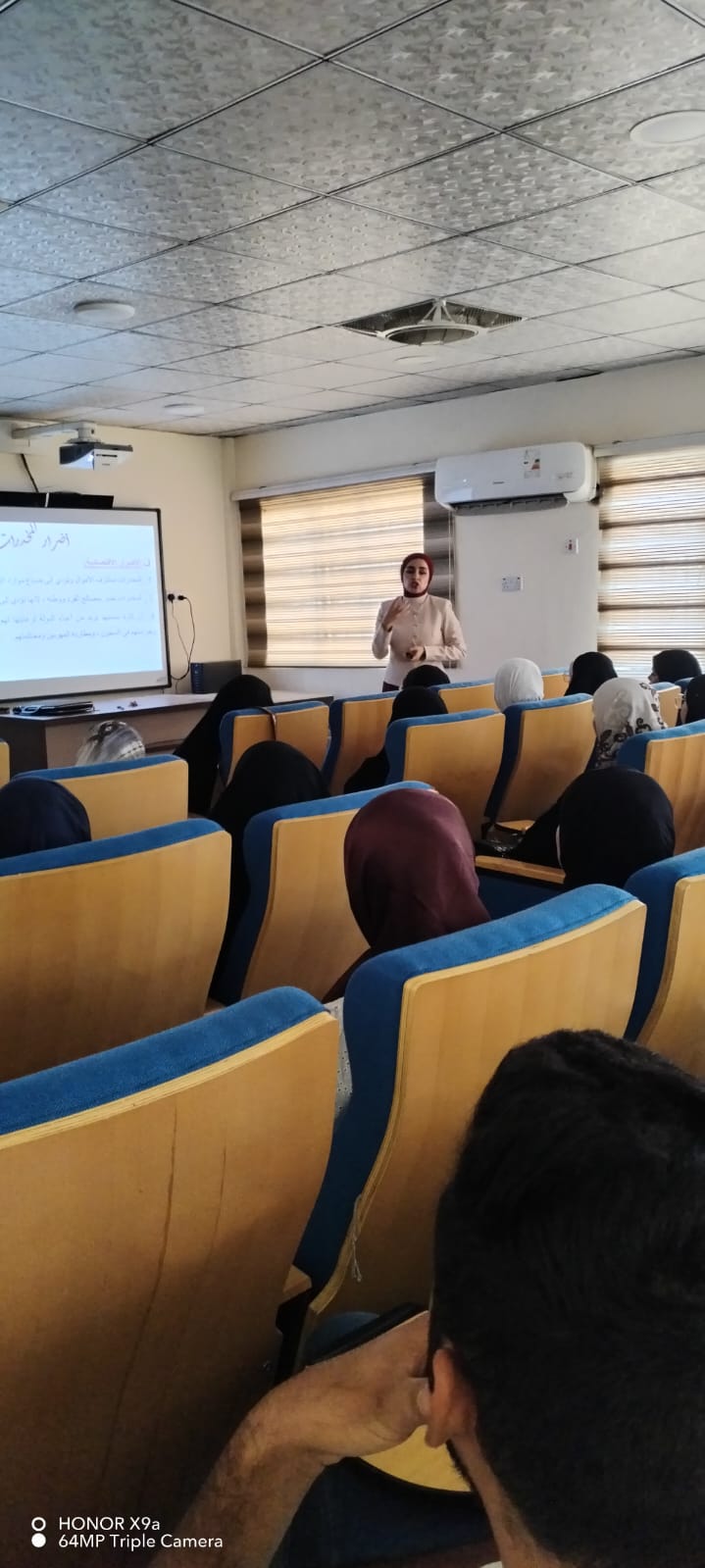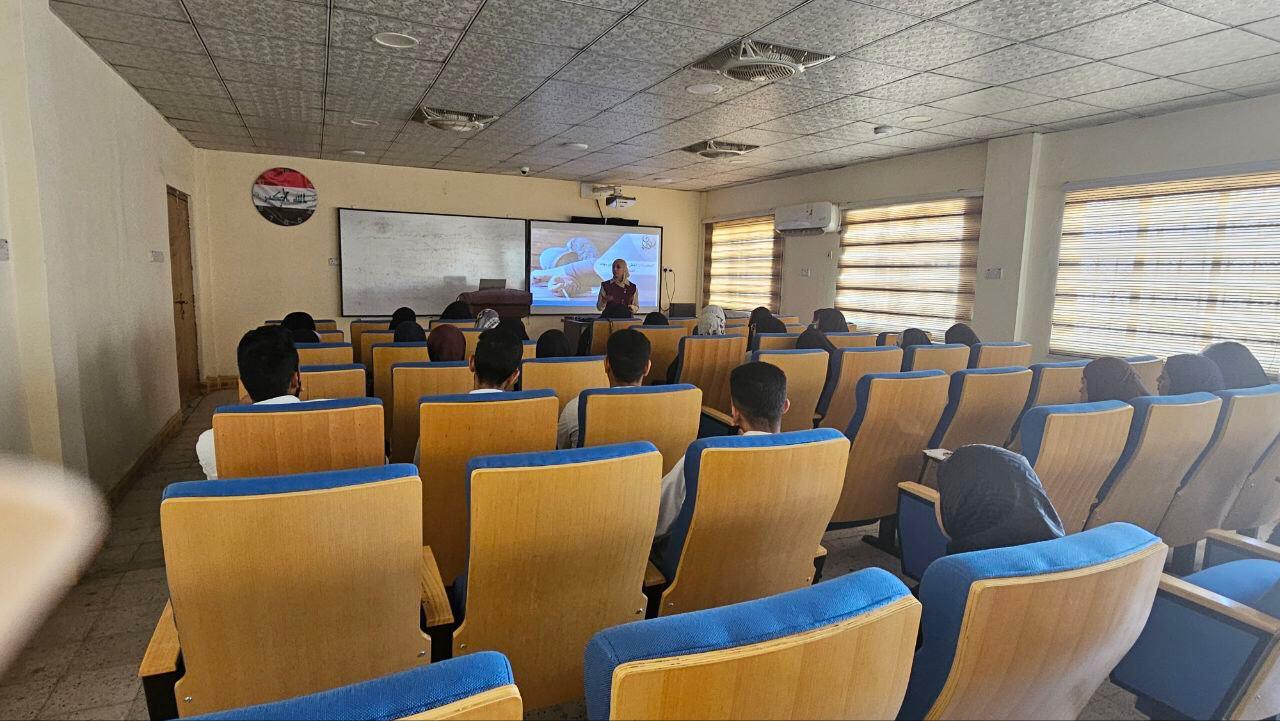 The seminar featured presentations by Dr. Nuha Saeed Kadhim, Head of the Community Health Branch, and Assistant Lecturer Noor Salah Sharif, a faculty member at the college.