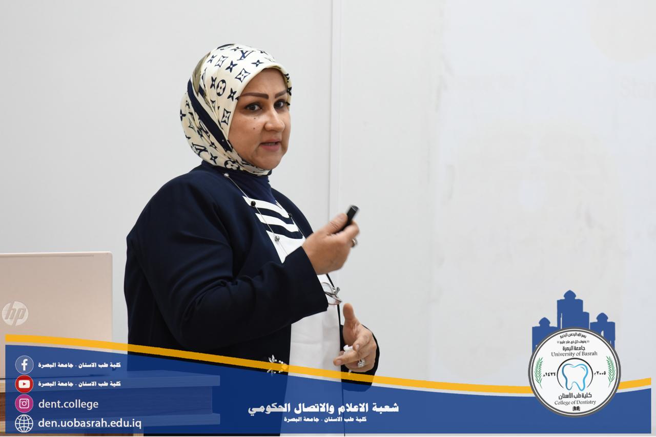 The lecturer, Dr. Rafida Majeed Abdul-Hussein, discussed the impact of bariatric surgery on oral health six months after the procedure, highlighting both the positive and negative effects on the gums and oral tissues.