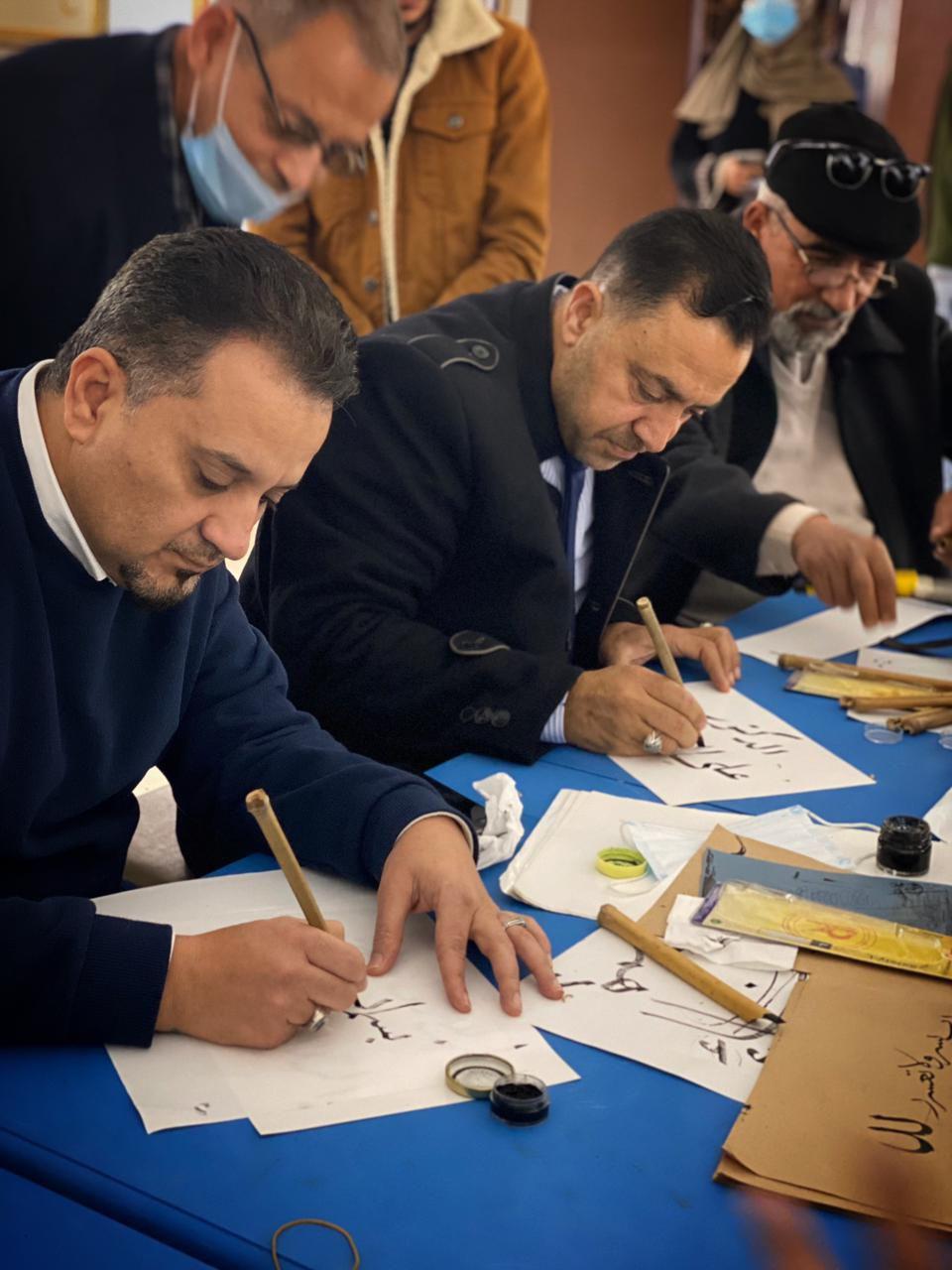 Media of the College of Nursing Alaa Al-Husseini Prof. Dr. Abdulameer Abdullah Almusawi, Dean of the College of Nursing at the University of Basrah , participated in the activities of the first annual festival of Arabic calligraphy arts and shaping the one dimension, which was held by the College of Fine Arts and attended by the Dean of Arabic Calligraphy in Basrah , Abdul Karim Hassan Ramadan, Dr. Ali Al-Kanani, Dean of the College of Fine Arts at Basrah University and a group of Among the faculty instructord and a number of talented artists and calligraphers in Basrah. The exhibition included 60 artworks by a group of calligraphers whose styles varied between al-jali, al-diwani, al-kufi, al-naskh, al-rqa 'and thuluth, and used both vertical and horizontal rectangular styles. |