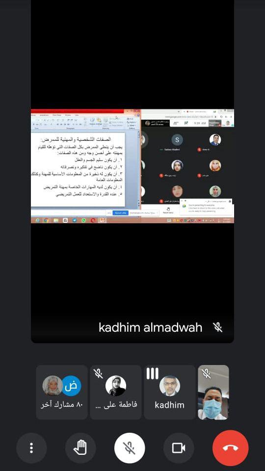 Prof. Dr. Abdulameer Abdullah Almusawi, Dean of the College of Nursing at the University of Basrah, continued the electronic lectures of the language course (Nursing Ethics) for the first stage of the morning study, which was given by the teacher Kazem Jawad Awad.Almusawi praised the faculty teaching’s effective contribution to adequate explanation, restating some important points and focusing on what the student needs in nursing. .