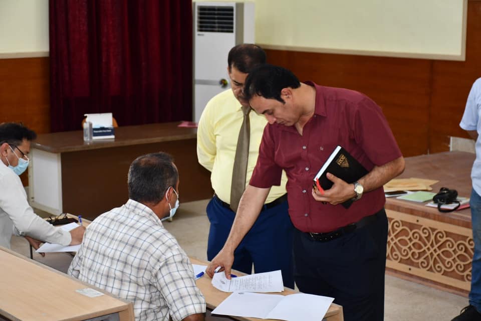 The Dean of the College, Prof. Hamid Siraj Jaber, followed the conduct of the exams in terms of emphasizing safety measures from dusting the halls, wearing masks, providing sterilizers, organizing halls, social distancing, and taking into account questions for ministerial controls as well as a commitment to attend at the specified time for the exam.