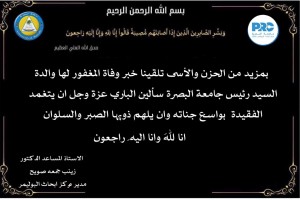 The College of Computer Sciences extends its condolences to Dr. Muhannad Jawad Kadhim, President of the University of Basrah...