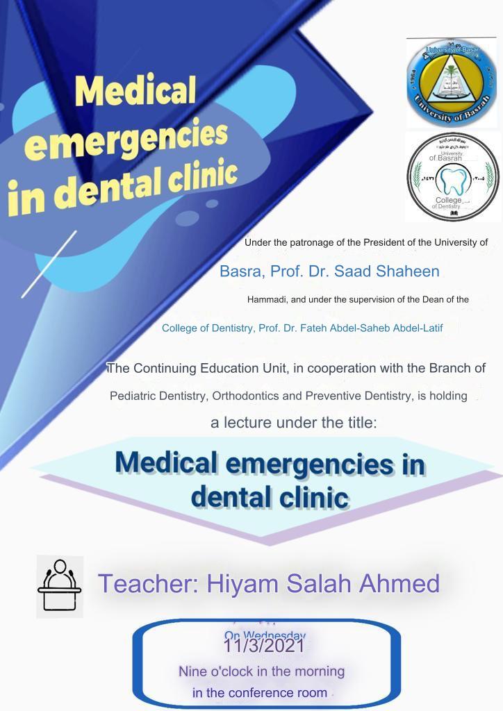 The College of Dentistry will hold a scientific lecture entitled (Medical emergencies in dental clinic)