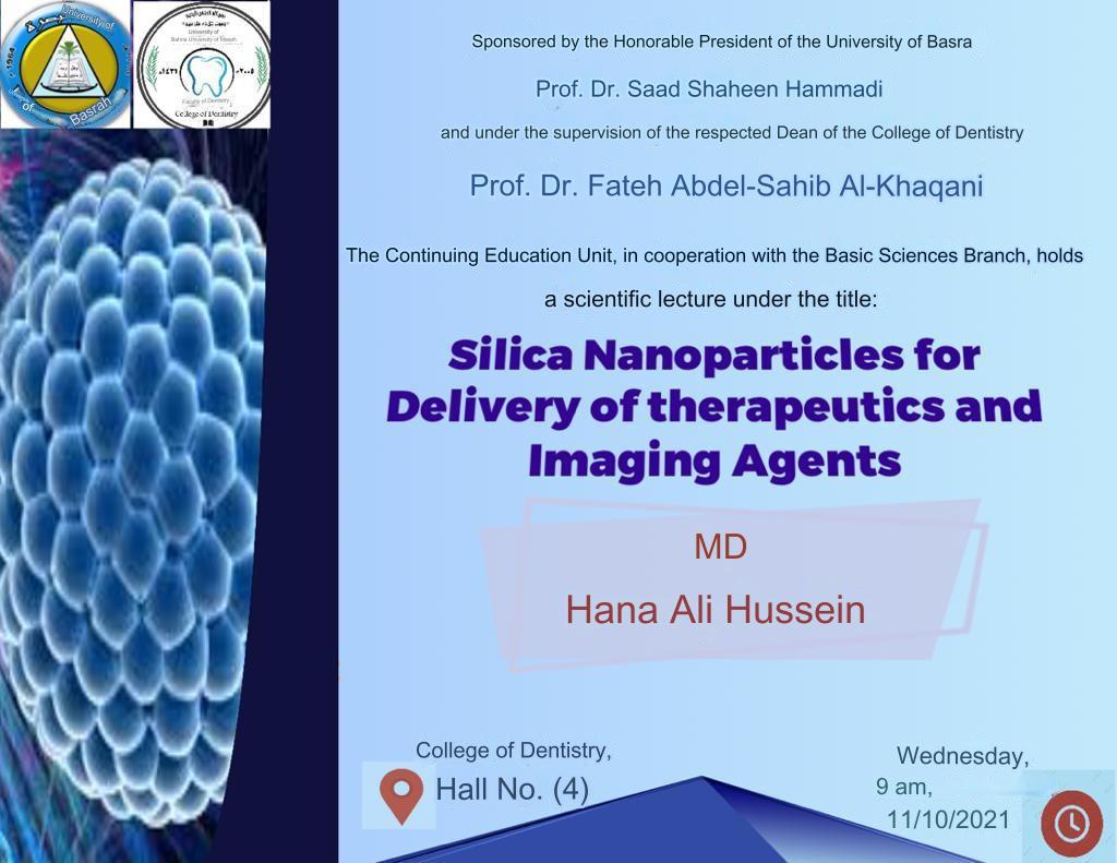 The College of Dentistry will hold a scientific lecture entitled (silica nano particles for delivery of therapeutics and imaging agents).