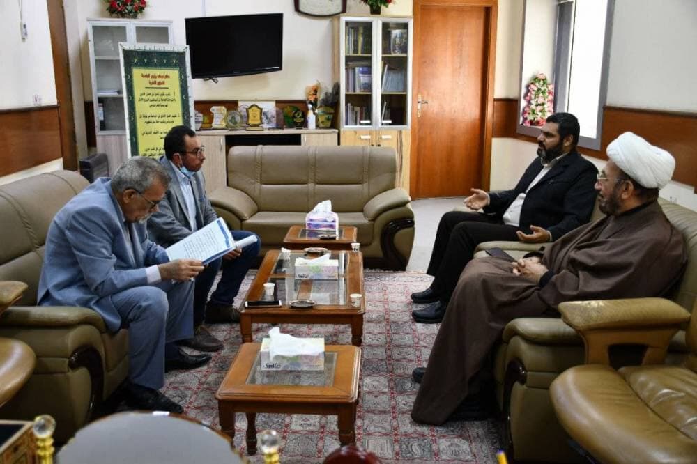 The Assistant President for Administrative Affairs of the University, Prof. Dr. Ali Himdhi Diab, received the Director of Ahl al-Kisa Cultural Foundation, Imad Al-Din Al-Moussawi, in his office at the University Presidency.