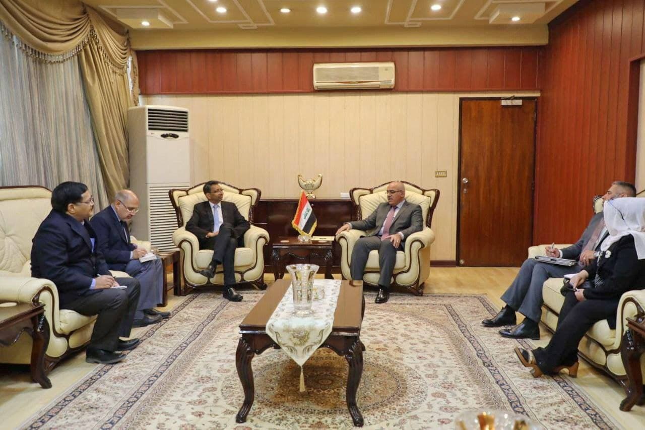 The Minister of Higher Education and Scientific Research, Prof. Dr. Nabil Kazim Abdul Sahib, received the Indian Ambassador in Baghdad, Mr. Prashant Besai, and they discussed prospects for joint scientific cooperation between the two countries.