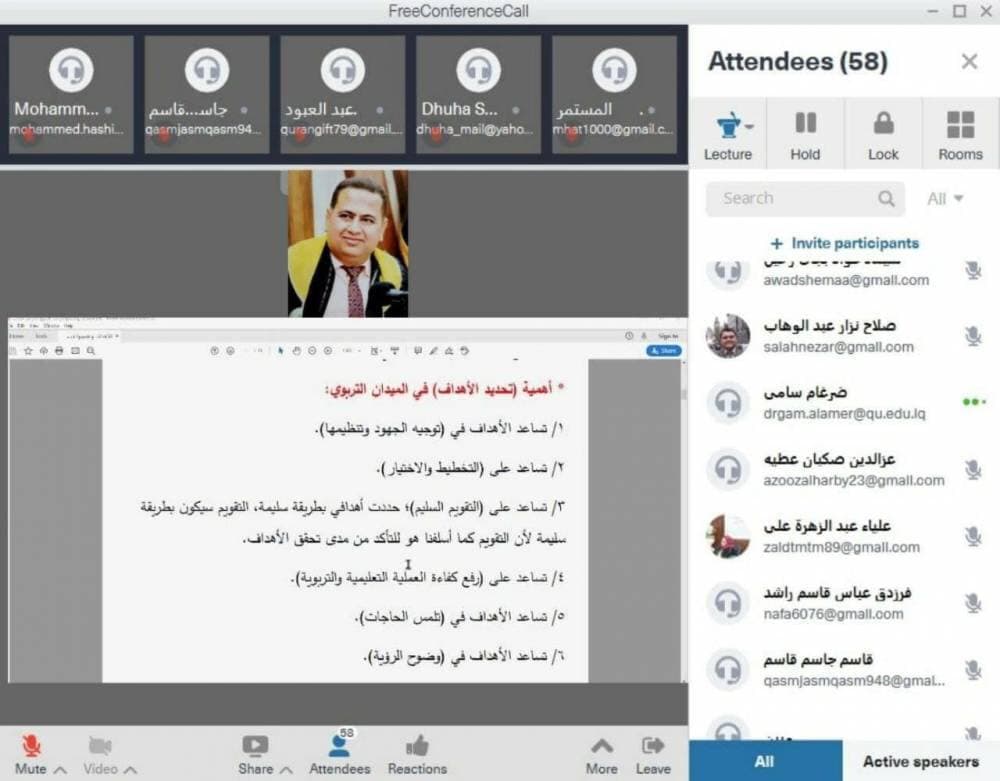 The Continuing Development and Education Center at the University of Basrah organized an online workshop on educational objectives.