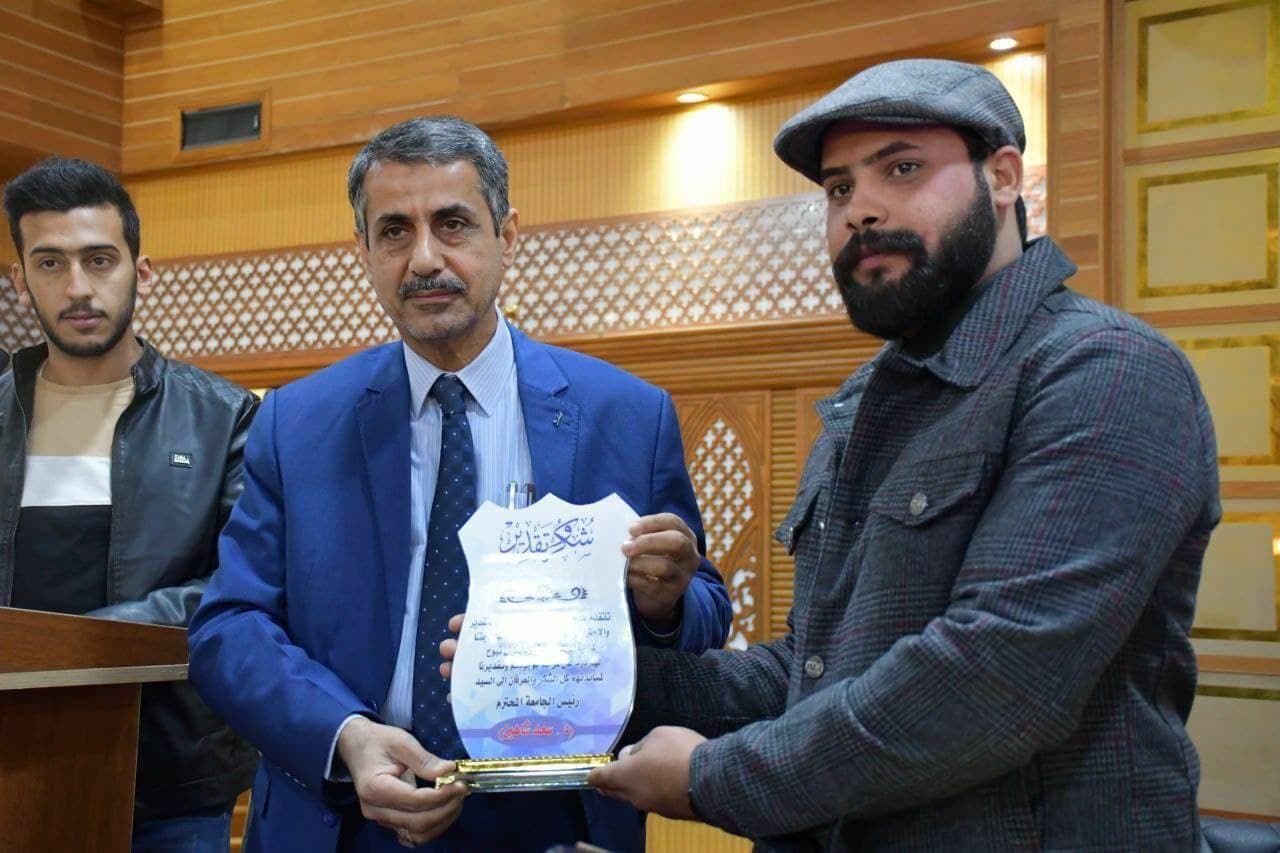 The ceremony included honoring the university president, Dr. Saad Shaheen Hammadi, and his assistant for administrative affairs, Dr. Ali Himdhi, and the employees expressed their thanks for the efforts made by the university.