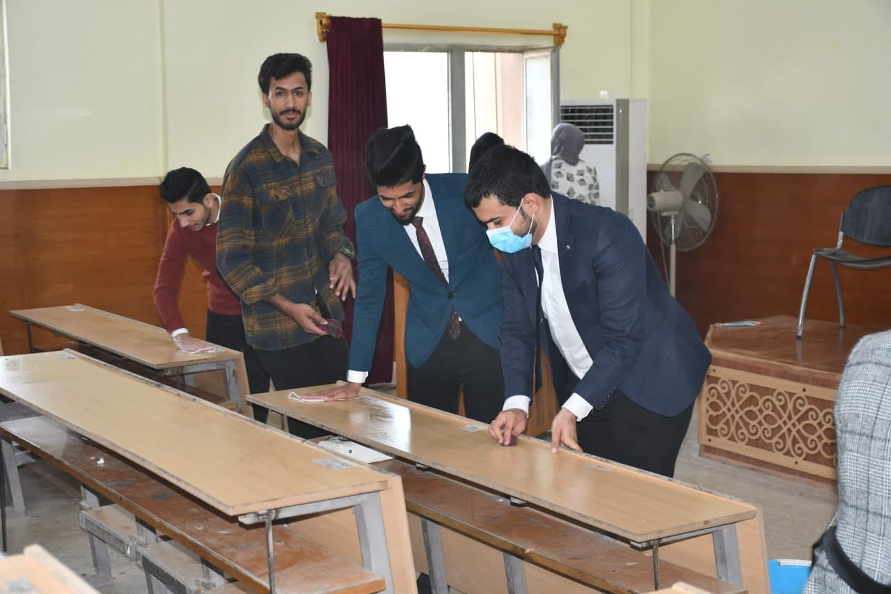 The Department of History in the College of Education for Human Sciences conducted a campaign to clean the corridors of the department by the professors and students of the department with the start of the first-stage students’ shift and to enhance the spirit of cooperation and solidarity and in implementation of the noble Prophet’s hadith (Cleanliness is from faith).