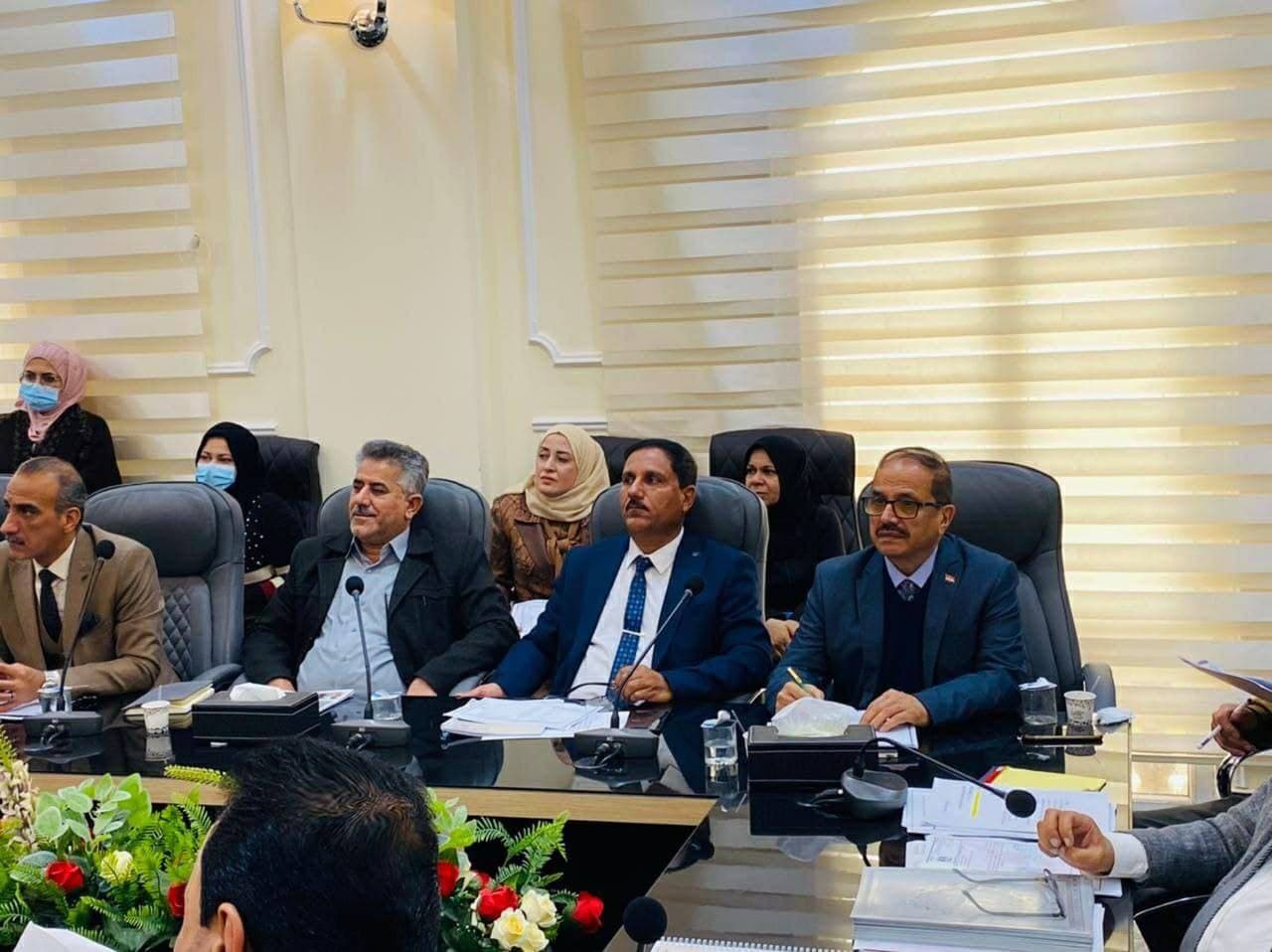The University of Basrah, represented by the Marine Science Center and the university presidency, participated in the meeting of the Central Water Management Committee of Basrah Governorate, which included all departments concerned with the water situation in the governorate.
