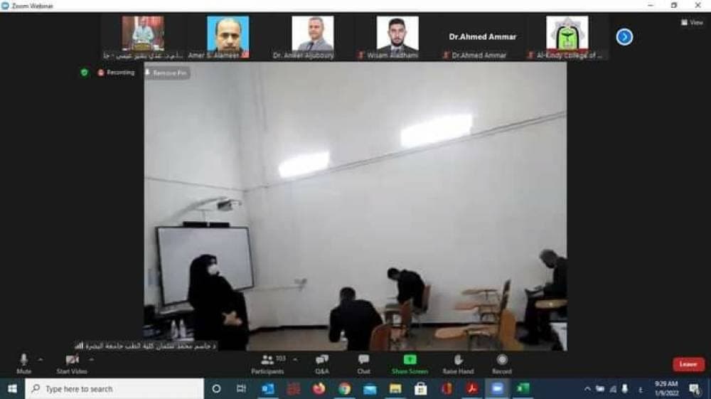 The University of Basrah, in the presence of the Ministerial Team for E-Learning and the Assistant Director-General of the Scientific Supervision and Evaluation Authority in the Ministry, reviewed the procedures for conducting the attendance exams for postgraduate students online in the university's colleges.