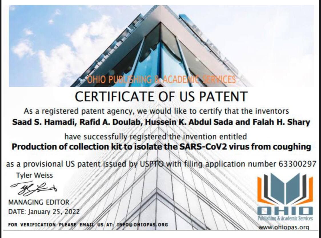 This invention was made by a scientific team from the University of Basrah consists of the President of the university, Prof. Dr. Saad Shaheen Hammadi, and the instructors, Rafid A. Doulab, Hussein K. Abdul Sada and Falah H. Shary.