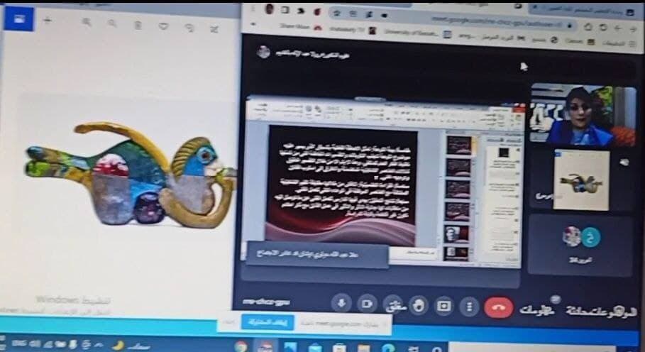 The panel discussion presented by Dr. Rola Abdel-Ilah included the method of analyzing ceramic art forms in a sample of scientific research and a theoretical explanation of ten analytical steps as well as their practical application in analyzing the ceramic artist models whose topic was devoted to women. The panel discussion was attended by a group of college professors and a distinguished group of postgraduate and undergraduate students.