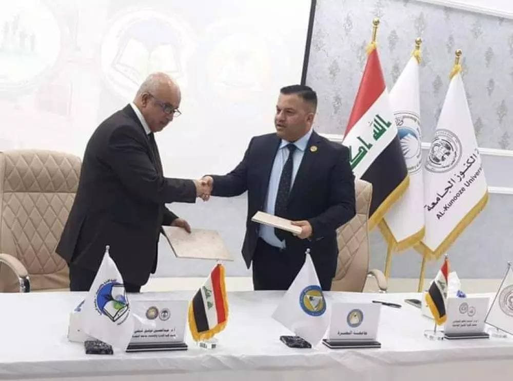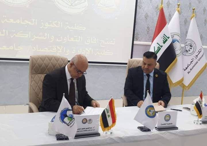 The College of Administration and Economics at the University of Basrah and the Al-Kunooz University College signed a scientific and cultural agreement in the field of joint scientific cooperation between public and private colleges.