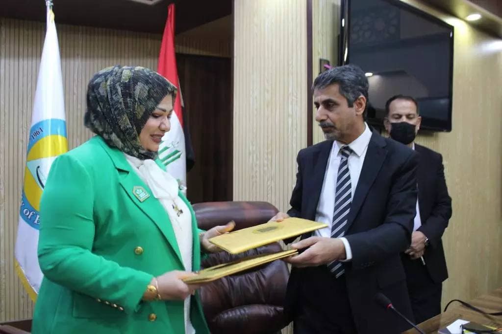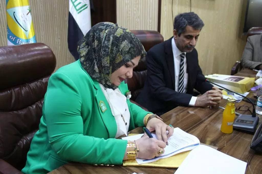 The University of Basrah and the Northern Technical University signed an agreement for joint cooperation in the academic fields to raise the scientific and research level. The agreement was signed by the President of the University, Dr. Saad Shaheen Hammadi, with the President of the Northern Technical University, Dr. Alia Abbas Ali Al-Attar.