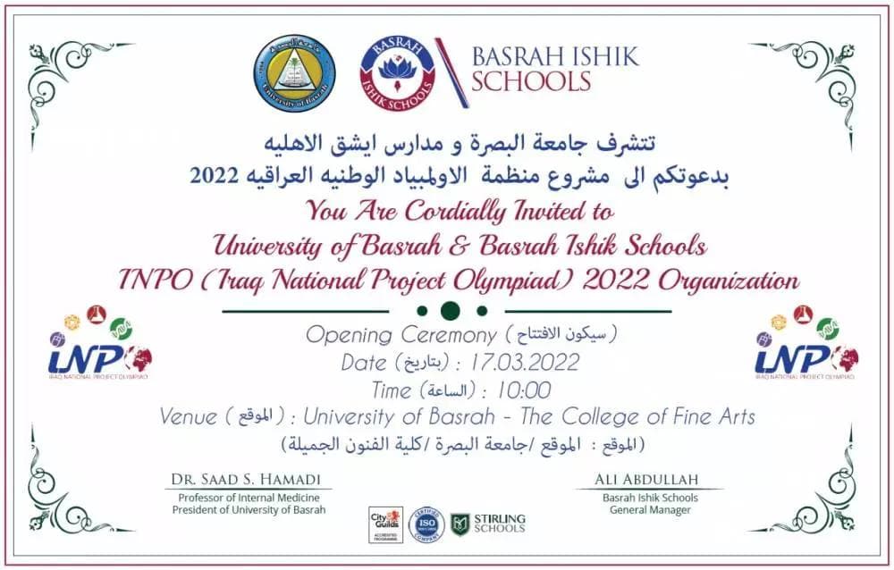 We wish success to all schools, students and teachers competing in the Iraqi National Projects Olympiad (INPO) 2022
