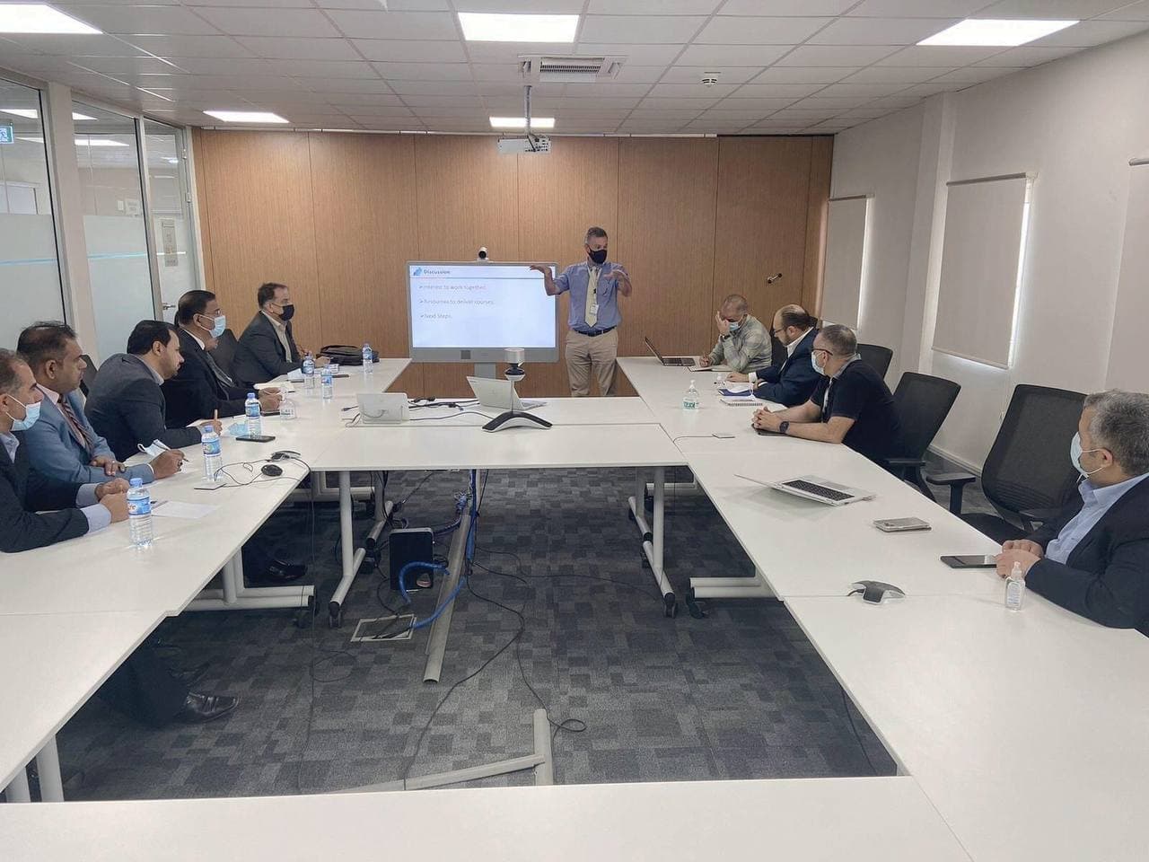 A delegation from the University of Basrah visited the headquarters of the Basra Gas Company headed by the Assistant President for Administrative Affairs of the University, Dr. Ali Himdhi Diab, accompanied by Dr. Ramzi Salem, Dean of the College of Engineering and the Joint Coordination Team.