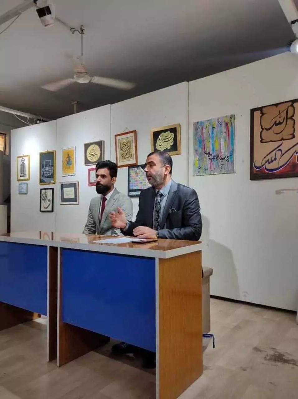 The lecture, which was held within the activities of the second annual festival of Arabic calligraphy, discussed the reality of this embodiment and the paradoxes of the traditional calligraphic painting on the figurative work, highlighting the outputs of this employment, both aesthetically and objectively, for the letter alone or in combination as well. It is different from what is traditional as well. The lecture also presented the different ways of displaying visual works with crafts and their contrast from what is traditional. The lecture was attended by a number of calligraphers and a group of students of the College of Fine Arts.