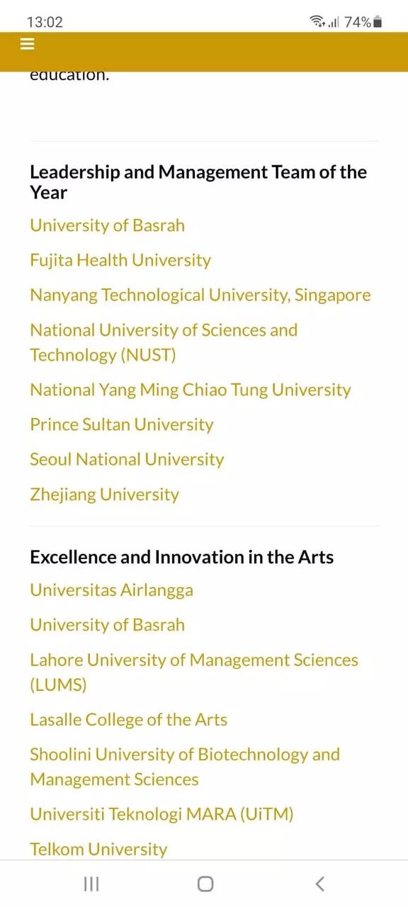 The University of Basrah ranked first and second in the Oscars for Higher Education in Asia, and it is the only university in Iraq that achieves these ranks.