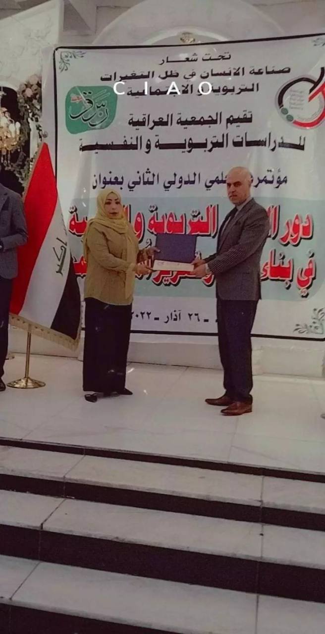 The teaching staff at the Educational Guidance and Psychological Care Center at the University of Basrah, Ashwaq Jabbar Hammoud, participated in the second international conference held by the Iraqi Society for Educational and Psychological Studies, held under the title (The Role of Educational and Psychological Sciences in Building the Individual and Strengthening Community Security).