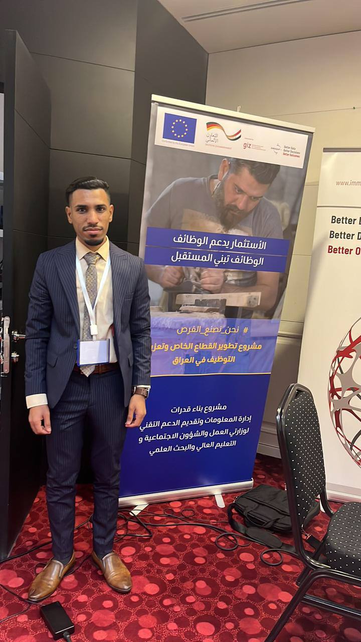 The director of the website division, programmer Hussein Jassim Muhammad, participated in a workshop organized by the Department of Studies, Planning and Follow-up at the Ministry of Higher Education and Scientific Research in cooperation with (IMMAP and GIZ) on a project to establish an electronic platform for the employment of graduates with the participation of the universities of Basrah, Qadisiyah, Nahrain, Baghdad and the University of Information and Communication Technology.
