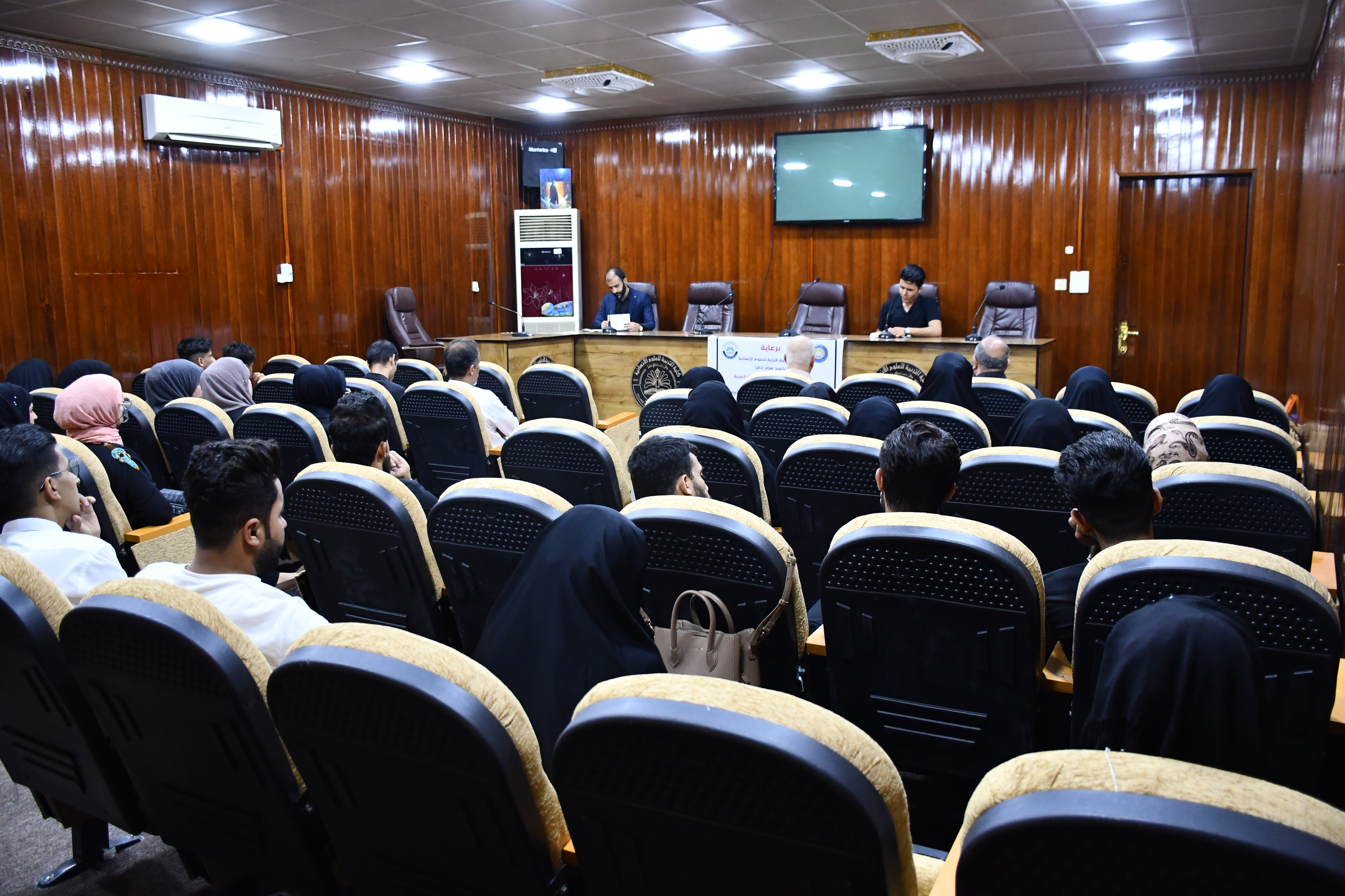 Under the patronage of the Dean of the College of Education for Human Sciences (Prof. Dr. Hamid Siraj Jaber) and under the supervision of the Head of the Arabic Language Department (Prof. Dr. Salem Yaqoub Youssef), students (first stage of the evening study) in the Arabic Language Department held a student symposium on Monday 4/2022 /25 AD; in commemoration of the martyrdom of the Lord of the Unitarians and the master of the pious, the Commander of the Faithful, Imam Ali bin Abi Talib (peace be upon him), and to benefit from the immortal travel of his humanity through the centuries and generations (peace be upon him) in the field of student activity from the students of the first stage; The students of the first stage/evening studies in the Arabic Language Department initiated a student symposium from the participation of the students of the first stage with research articles that dealt with axes from the humanity of Imam Ali (peace be upon him) in the field of his commandments of the necessity of acquiring knowledge, caring for orphans, dealing with a spirit of hope and compassion with society, and other This is what represents his fatherhood for all people, and poetry had its share in this symposium. Students participated in poems by well-known poets whose poems showed the great extent of loss due to the loss and departure of the Prince of Humanity and its title.