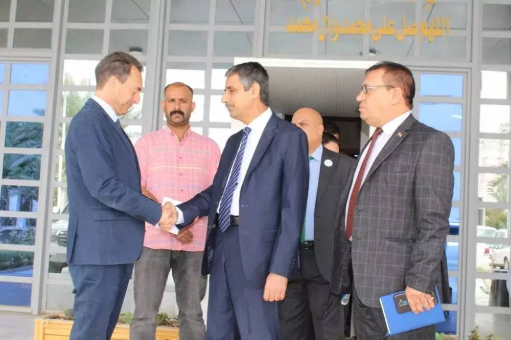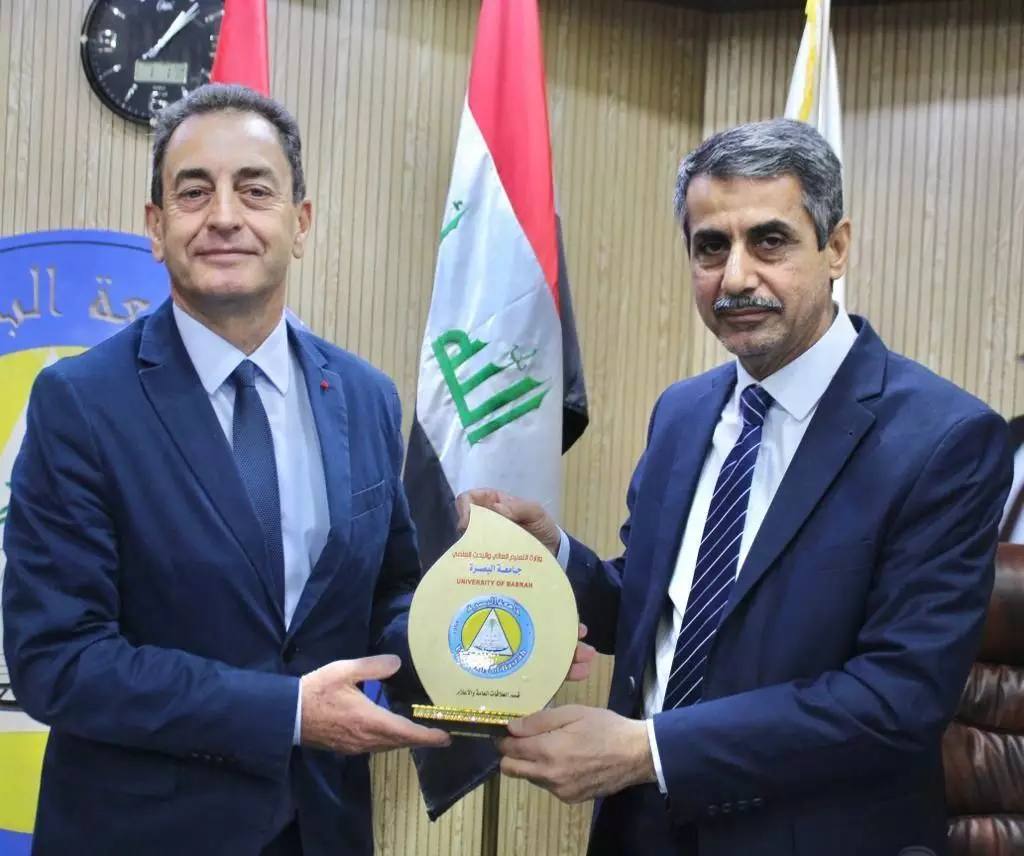 The Ambassador of the Republic of France, Eric Chevalier, and his accompanying delegation visited the University of Basrah, and met with the President of the University, Dr. Saad Shaheen Hammadi, his advisors, and a number of deans and directors of departments.
