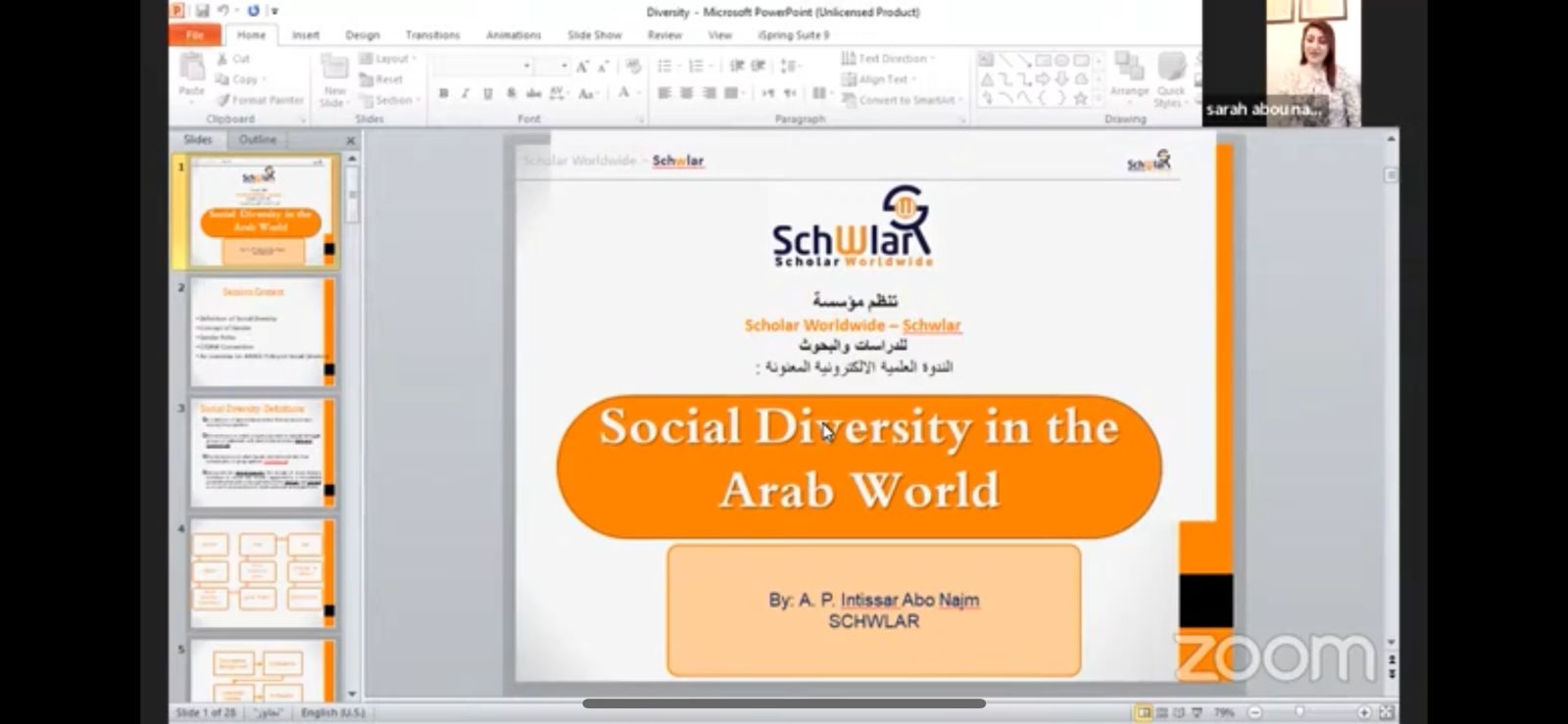 The Gender Equity Unit at the University of Basrah, in cooperation with Scholar Worldwide (Schwlar), organized a workshop entitled Concepts of Social Diversity in Arab Societies, which was held on the electronic platform Zoom and presented by M. The victory of Hamad Bou Negm The workshop aims to introduce the concept of Gender Equity among the different groups. The workshop addressed the clarification of the most important initial concepts and rules used in defining the categories of Gender Equity by gender, age, academic achievement and others. The workshop also showed the policies used in determining Gender Equity.