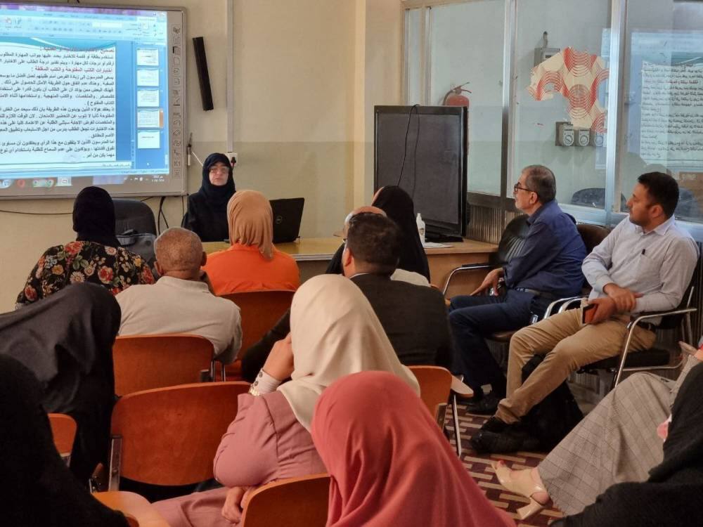 The lecture, which was presented by Dr. Nidal Issa Abdul-Mudhaffar, included a definition of measurement and evaluation, the criteria of a good test, the functions and types of achievement tests, the difference between assessment and evaluation, as well as the steps for creating and correcting a test.