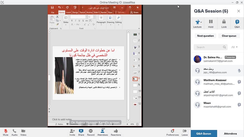The College of Education for Human Sciences organizes a workshop on (Time Management and Setting Priorities in Light of the Coronavirus Pandemic).