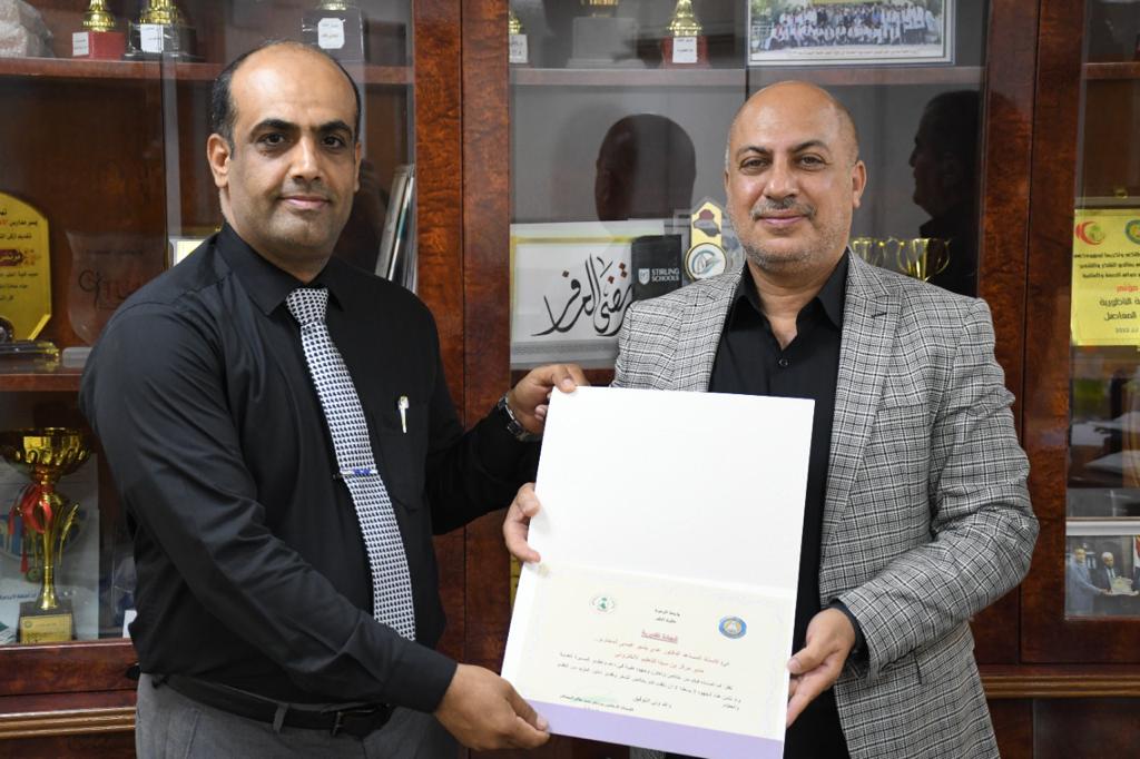 The Dean of the College of Medicine at the University of Basra honors the director of the Ibn Sina Center for E-Learning