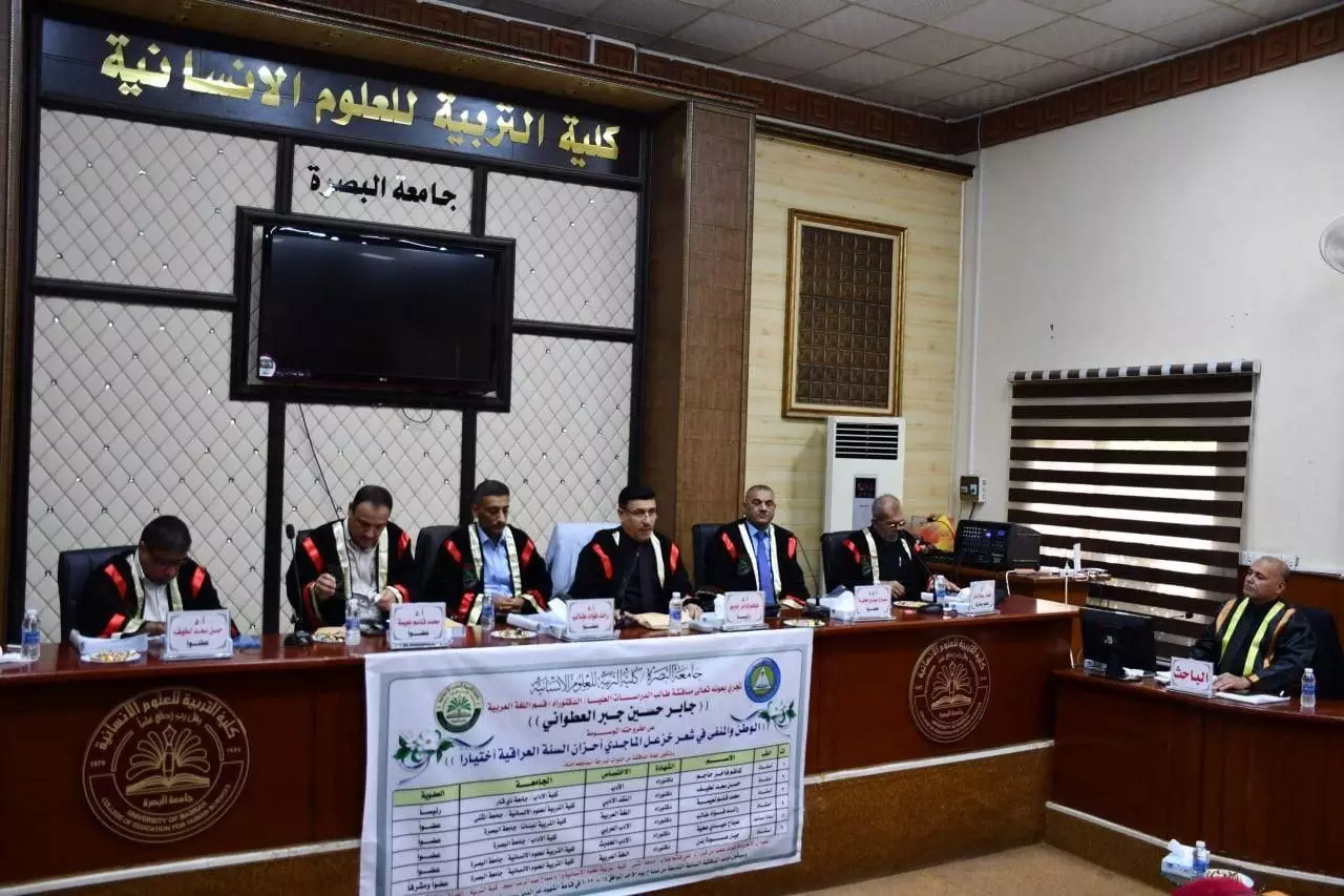The College of Education for Human Sciences at the University of Basrah discussed a PhD thesis titled (Homeland and Exile in the Poetry of Khazal Al-Majidi, Sorrows of the Iraqi Year).