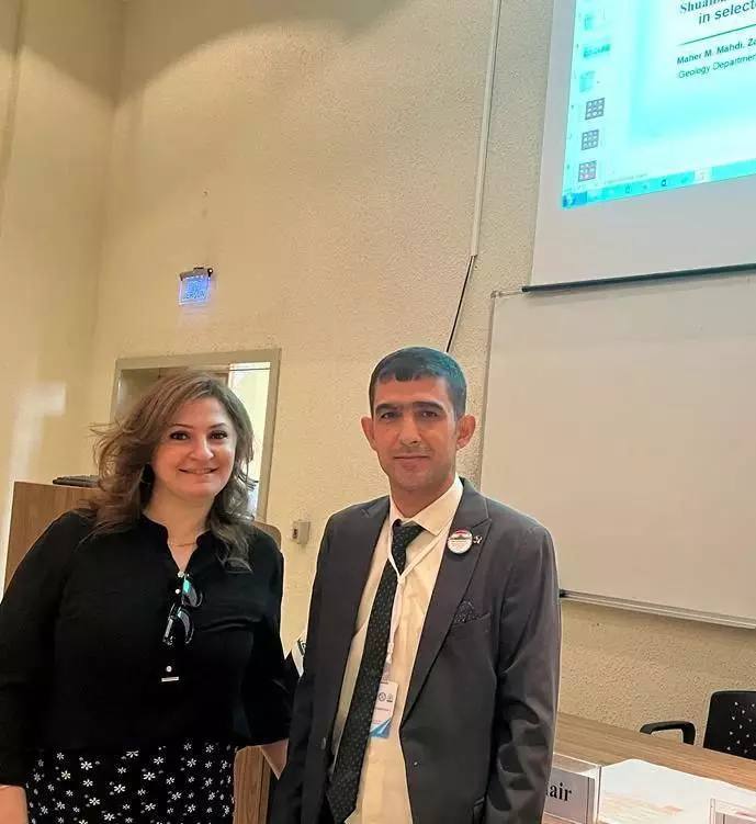 The two faculty members at the College of Science at the University of Basrah, Dr. Maher Mandeel, and the teacher, Dr. Sani Elia Gerges, participated in the Fifth International Scientific Conference “Giokurdistan” at the University of Sulaymaniyah, where they presented a scientific research entitled “Microfacies and depositional model of the Shuaiba Formation (Lower Cretaceous), in selected wells, Southern Iraq”.