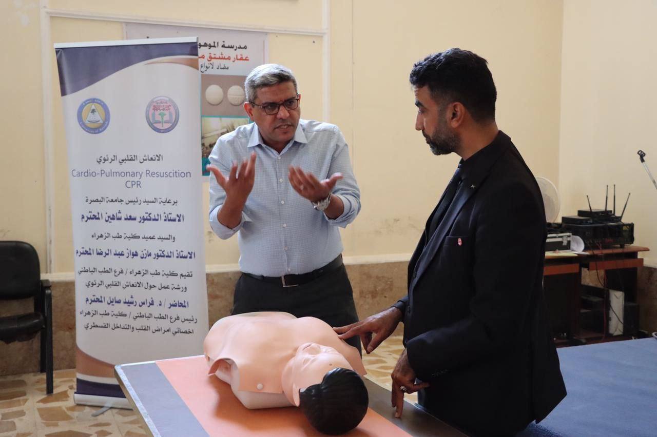 Al-Zahra College of Medicine at the University of Basrah organized a workshop on cardiopulmonary resuscitation in cooperation with the Basra Education Directorate and at the School of Gifted Students in Basra.